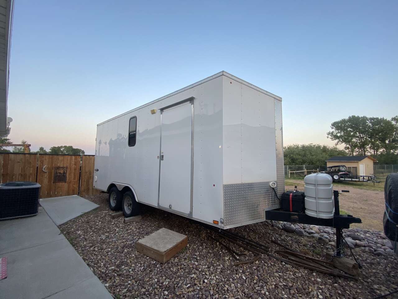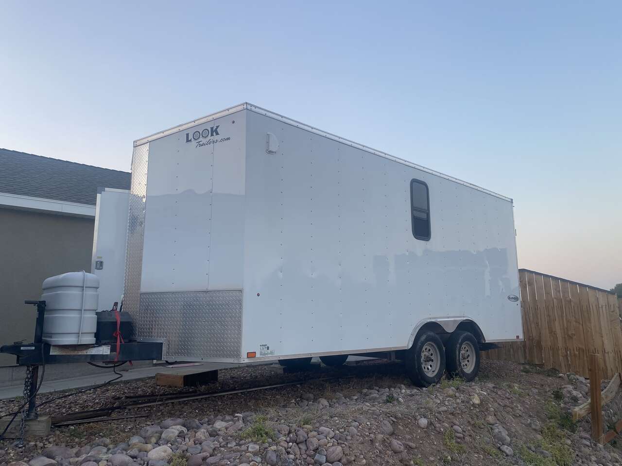 I had this custom built by Sam T evans it's a 2020 look element insulated with LED lights inside and out e track bunk beds that put up easy longer tongue with propane, bottles and batteries, stabilizing jacks on back fits our 4 seater can am commander 307 7four7 2759 with questions title in hand. Propane hose comes from tank to run buddy heater. Fits regular sxs and four wheeler easy. Will fit any 4 sxs. Bought a camper so no longer need this for camping in