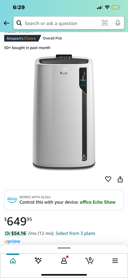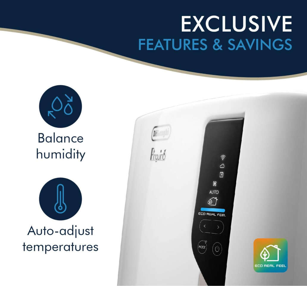 DeLonghi Portable Air Conditioner 12,500 BTU,cool extra large rooms up to 550 sq ft,wifi with alexa