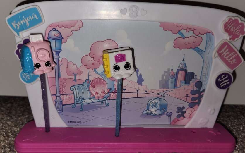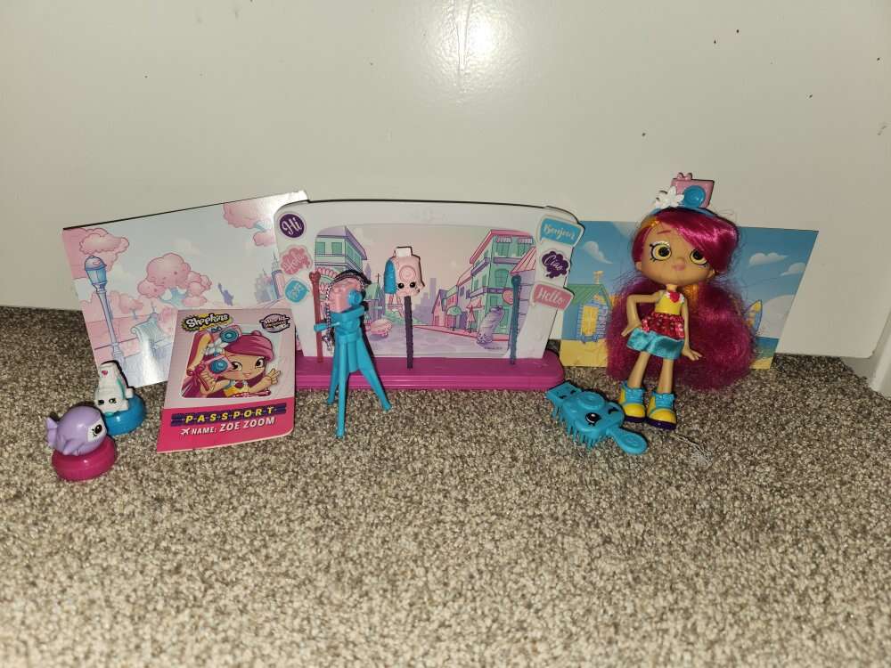 Barely used shopkin picture setup. Includes: Zoe Zoom, passport, 2 stamps, 2 shopkins (1 not pictured), camera, camera stand, 3 backdrops, 6 multi language hellos, and 3 stands for shopkins. Preferred Payment: Cash