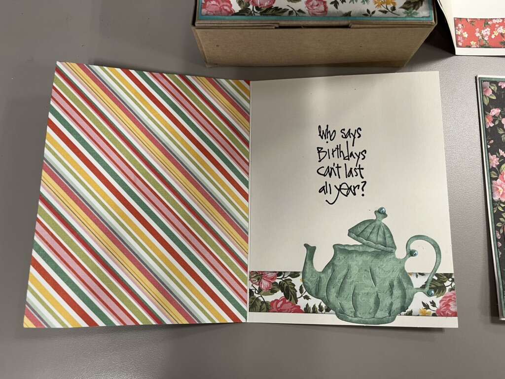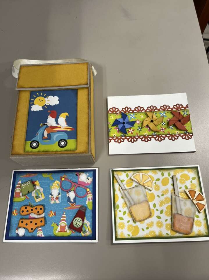 Made by my wife. Each set comes with a hand made box that has 6 cards and envelopes in them. All cards are different. 2 sizes. Large cards are 6 1/2 “ x 5” and are $42 a box. Smaller cards are 5 1/2 x 4” and are $36 a box. Tons of different themes to choose from