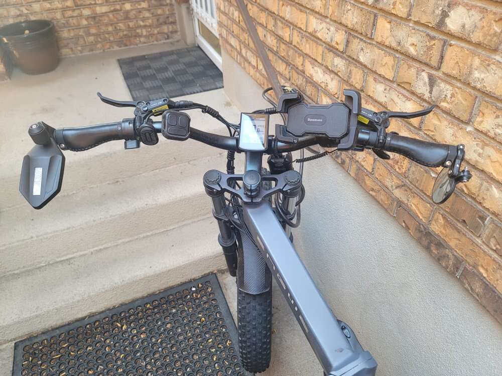 I'm selling my Engwe X26 electric bike. It has around 400 miles on it. The bike is a bit large. I ride it fine, though, and I'm 5'7" but have to have the seat all the way down. With the seat down, I can ride it fine. A few things this bike has that are unique. Two batteries. Excellent range. 3 point suspension. Headlight. Color LCD screen. Many modes including 'walk mode'. Excellent brakes (I just replaced the pads. It was really easy). I have added a very powerful horn, phone holder, and fenders. I will include a smart helmet that has a blinker control located on the bike. The smart helmet has Bluetooth and can take photos and videos. Bike also includes mirrors.