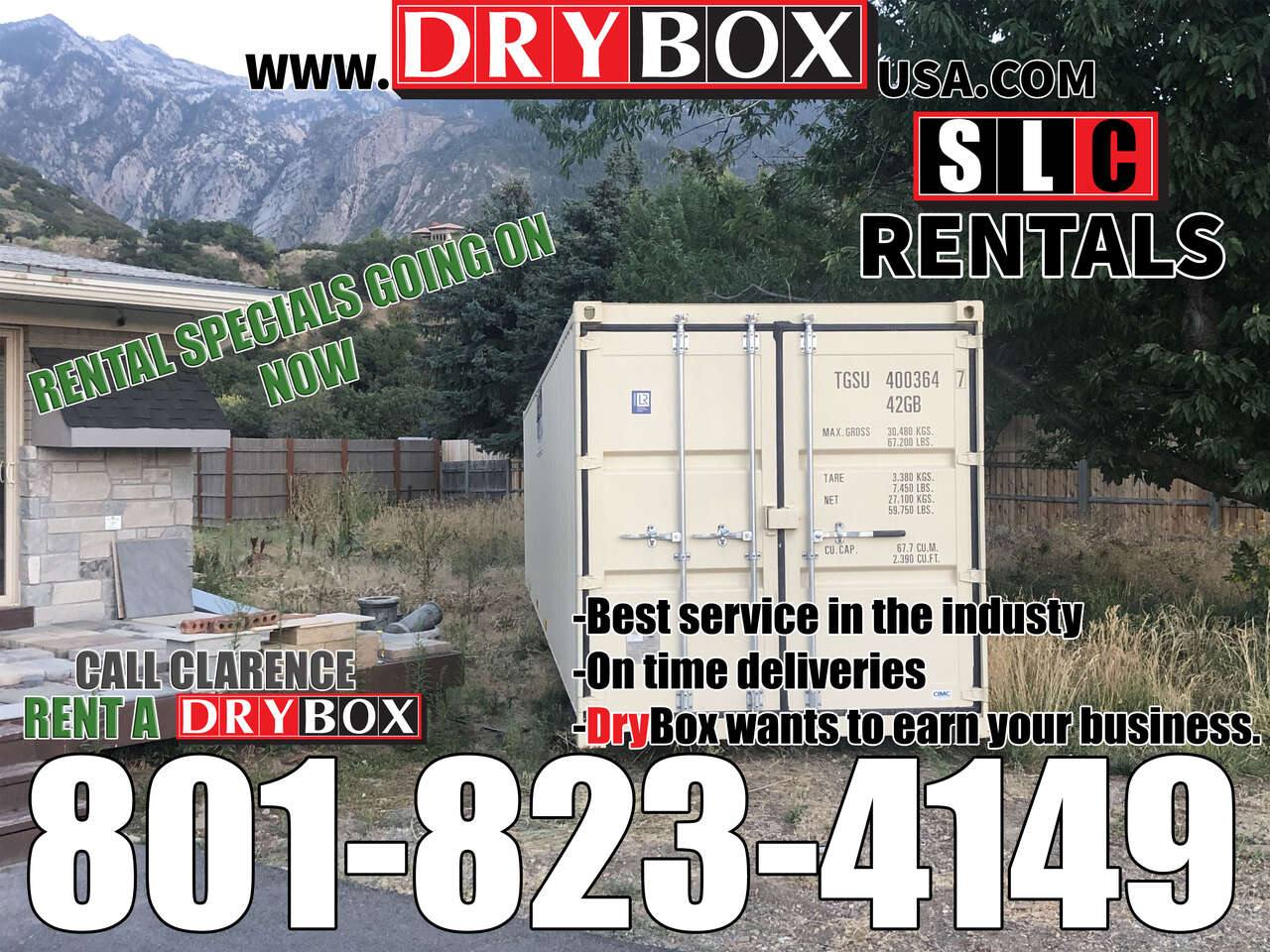 Call Clarence today 801-823-4149 or our Office @ 801-505-0002 for a no pressure quote or to get your container scheduled for delivery .