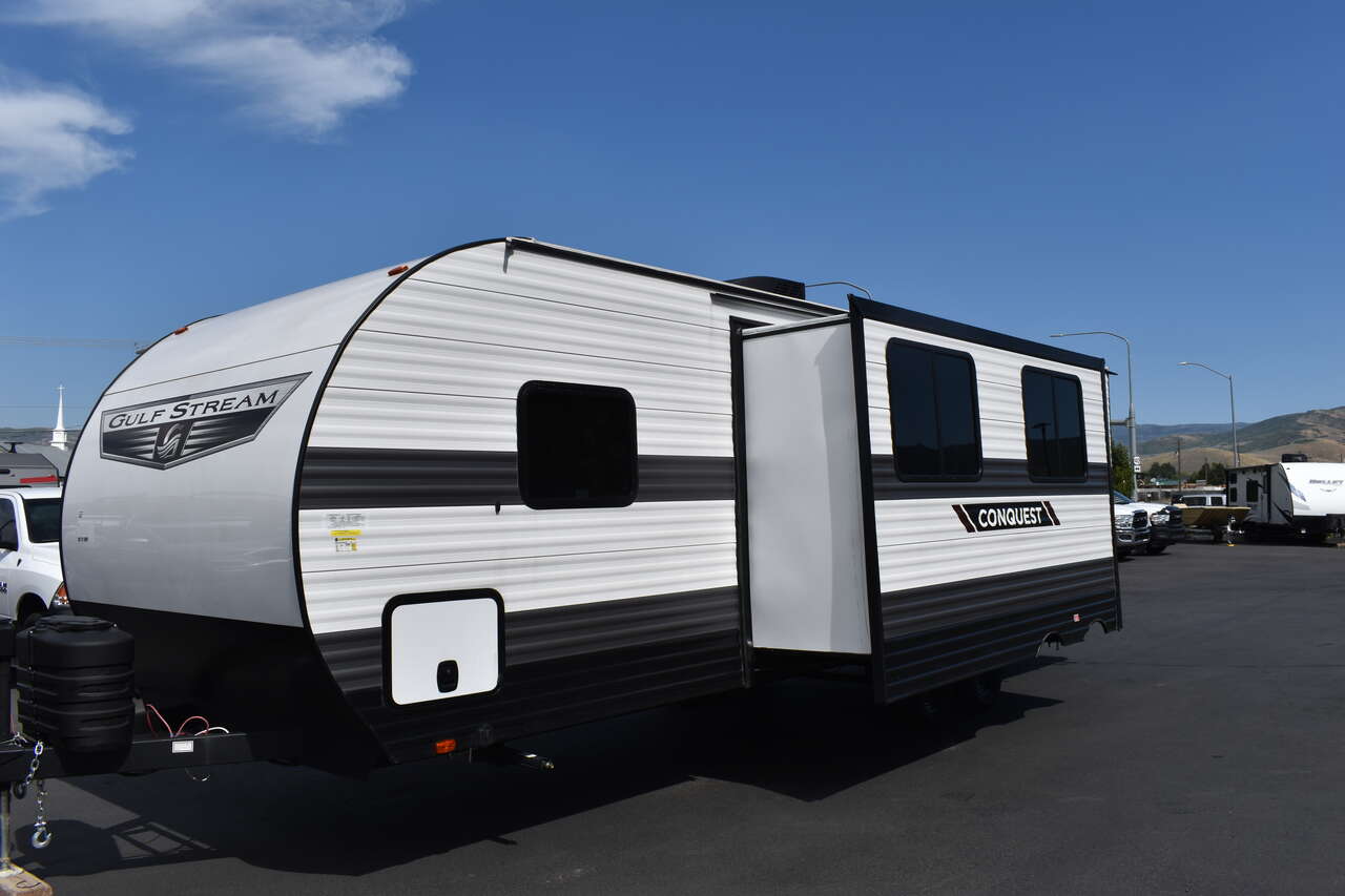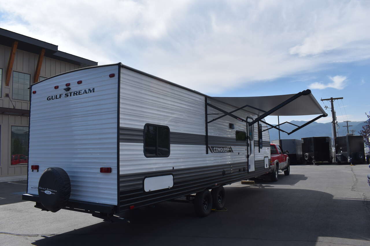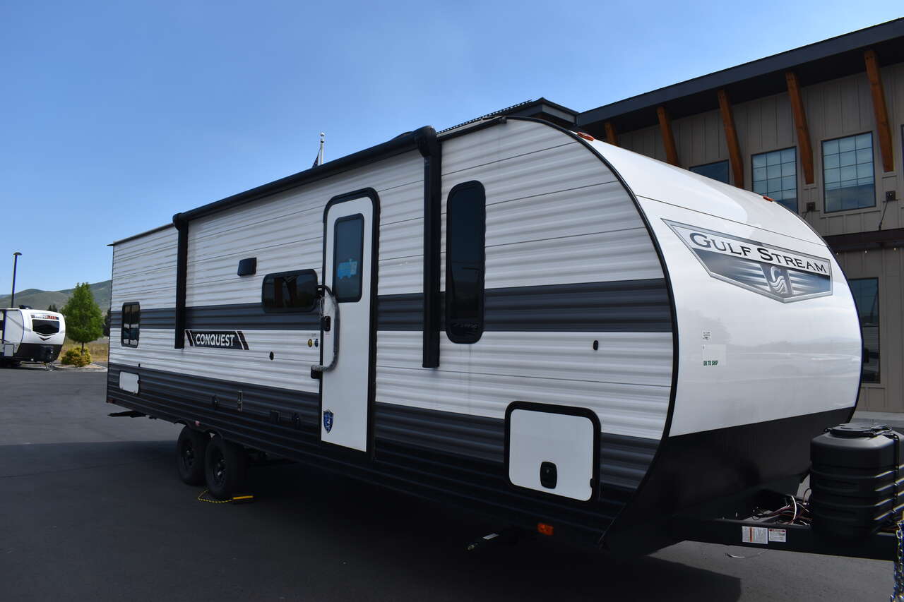 2024 Gulf Stream Conquest 279BH Sleeps Up To 9 People. Queen Bed, Double Bunk Beds, Convertible Sofa Bed, Full Bathroom, Full Kitchen With Fridge and Freezer, 3 Burner Stove, Oven, Microwave, Kitchen Table (Turns Into a Bed), Fire Place, Indoor and Out Door Sound System, Power Awning, Bunch of Storage, 30 Gallon Fresh Water Tank, 37 Gallon Grey Water Tank, 37 Gallon Black Tank, 16,000 BTU Furnace, 6 Gallon Water Heater, 13,500 BTU Air Conditioner, 3 Year Structural Warranty and So Much More!!!