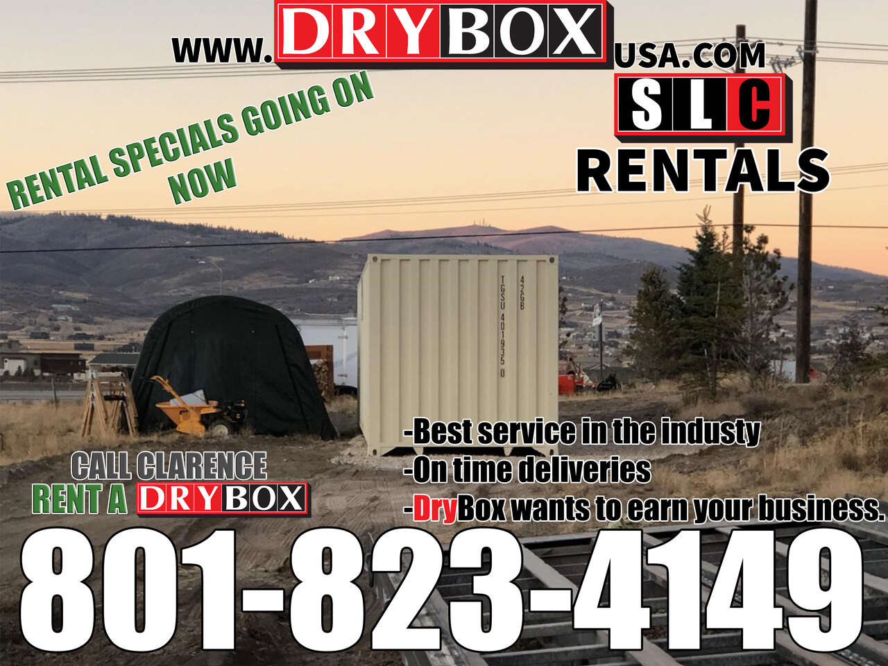 Call Clarence today 801-823-4149 or our Office @ 801-505-0002 for a no pressure quote or to get your container scheduled for delivery .