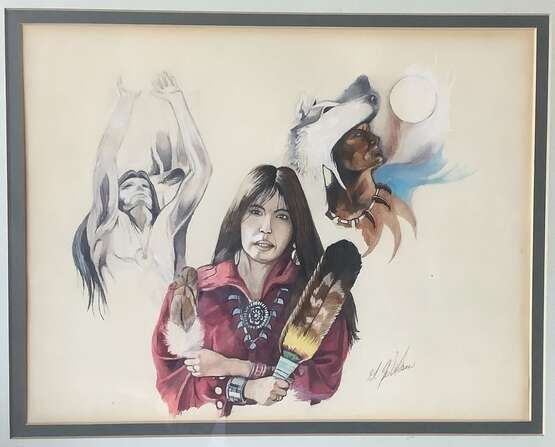 Exquisite Original Native American Painting Framed with Glass in 1969. I'm listing this for a friend. Watercolor on paper. This painting is 55 years old. It was an original painting by a Native American Indian On display for the last 55 years. The colors are still vibrant and sharp after all this time. It has never been exposed to direct sunlight. It is an original and is irreplaceable. It has the original frame and glass and has original signature. It is 21X17 framed.