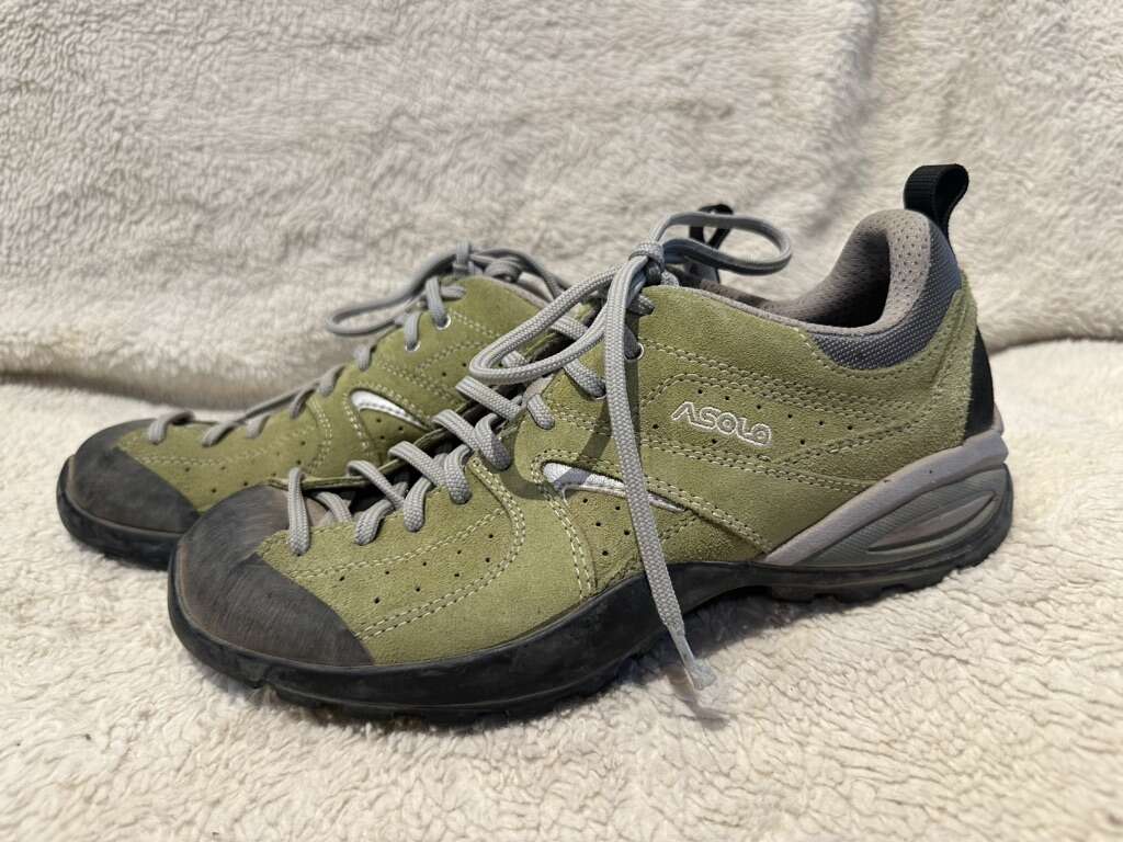 Asolo women’s size 8.5 light green leather hiking shoes with gray trim made in Romania. These are in excellent condition, see photos for details. I take cash or Venmo, but cash is preferred. Text is best. 801-2014446. Check out my other ads for additional sizes and styles.