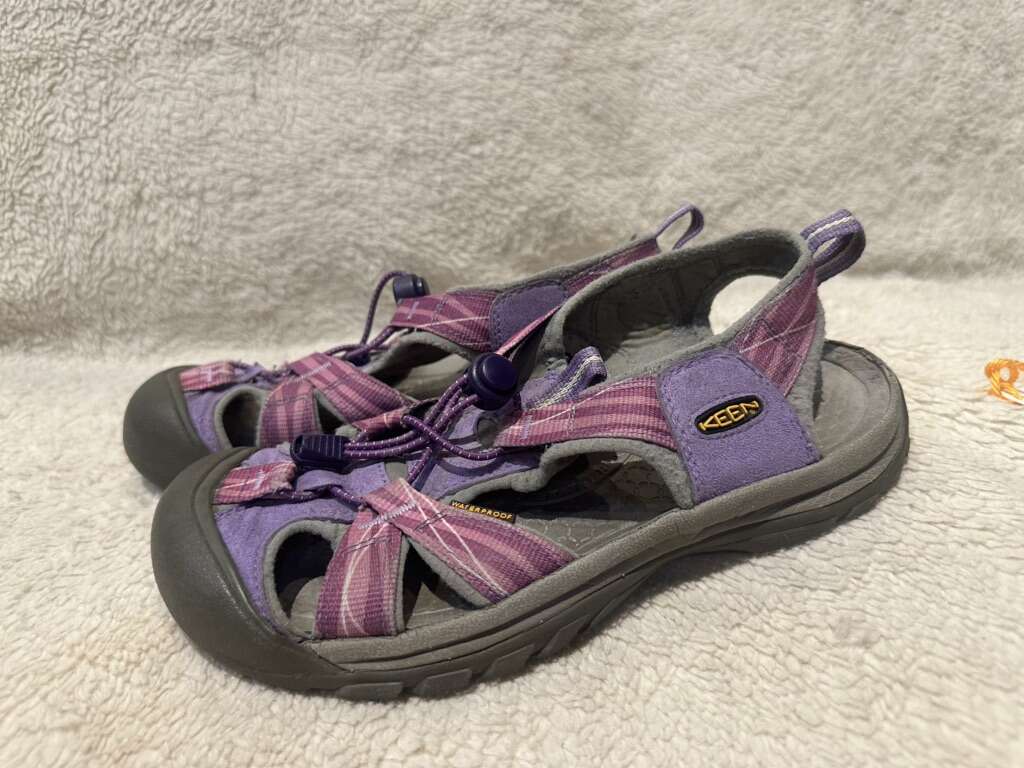 Keen women’s size 8 mauve/purple waterproof, hiking sandals. these are in good condition, see photos for details. I take cash or Venmo, but cash is preferred. Text is best. 801-201-4446. Check out my other ads for additional sizes and styles.