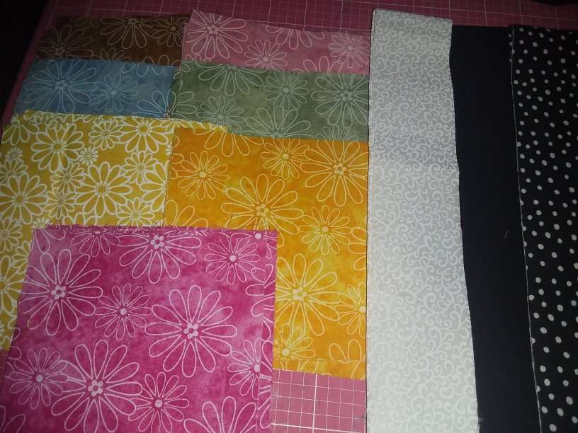 Cute crib size quilt top called Checkerboard Twist..made with 7 daisy prints...kit includes precut squares, and strips to make strip sets and a polka dot border. Backing and binding not included. Complete illustrated instructions. Fun project, a quilt to be treasured by someone special!