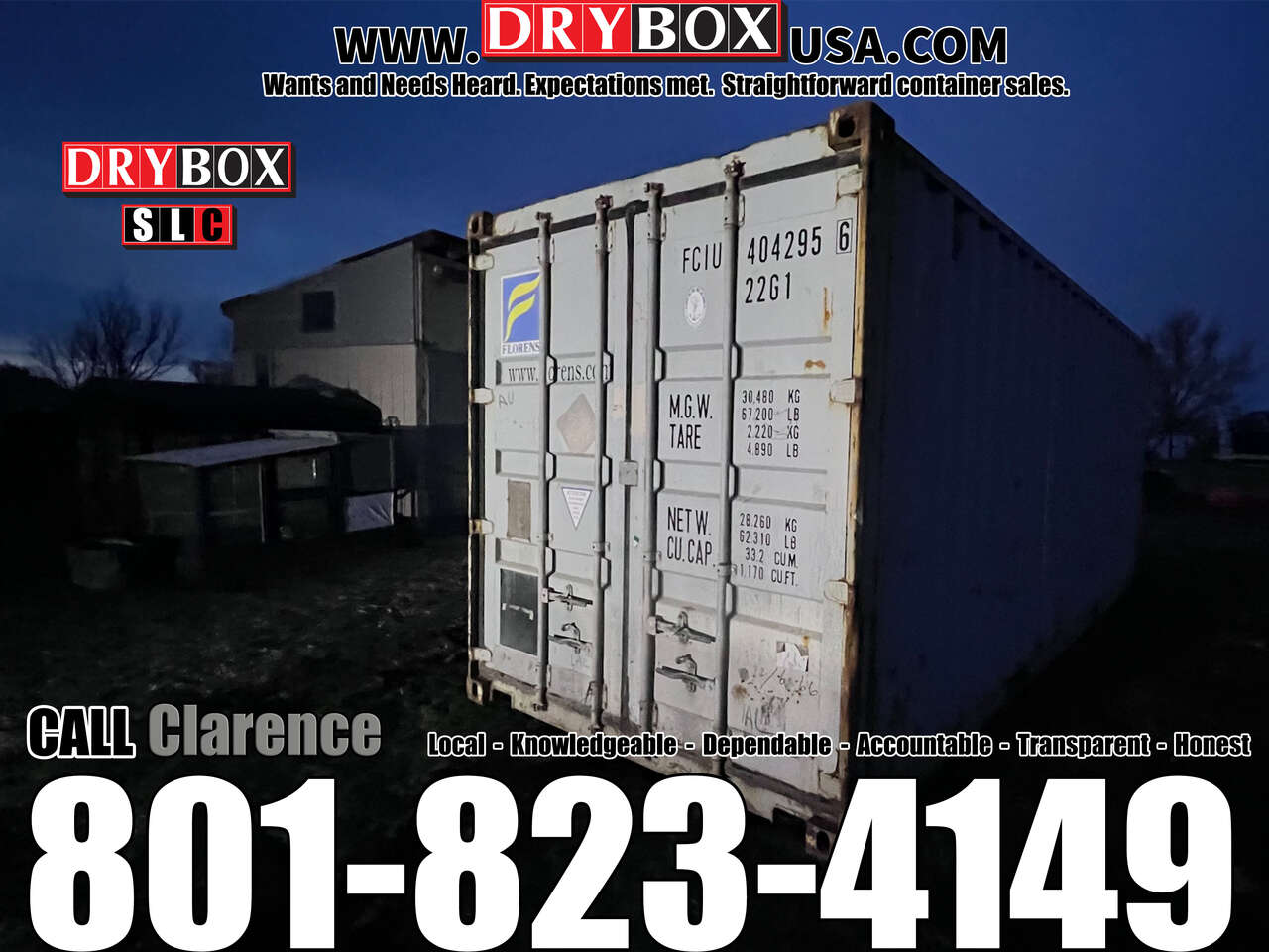 Call Clarence today 801-823-4149 or our Office @ 801-505-0002 for a no pressure all in, delivered quote or to get your container scheduled for delivery.