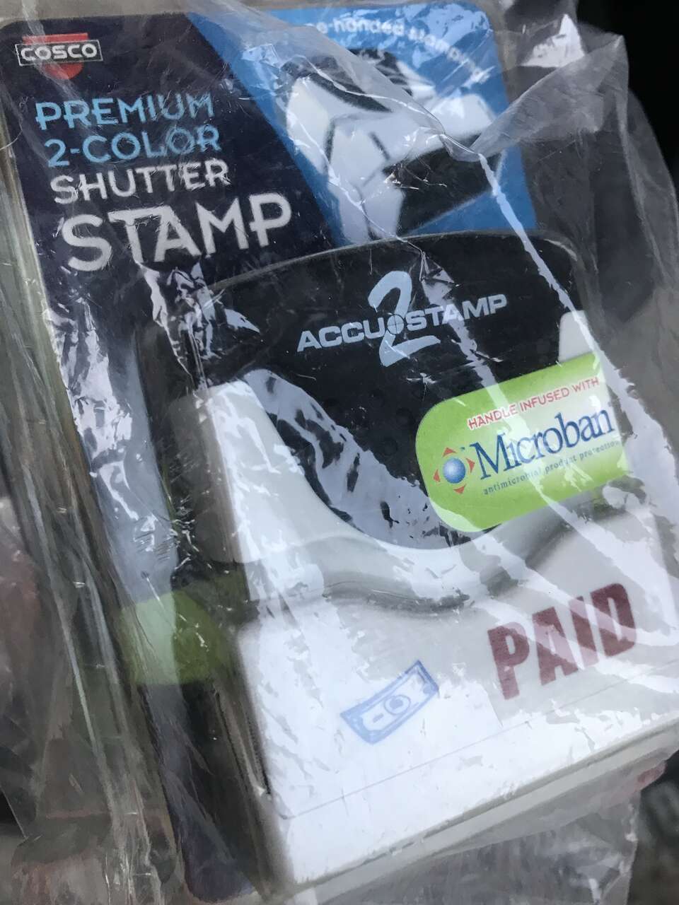 there is a bigger stamp made out of metal that has a phrase and date that is adjustable those are five dollars