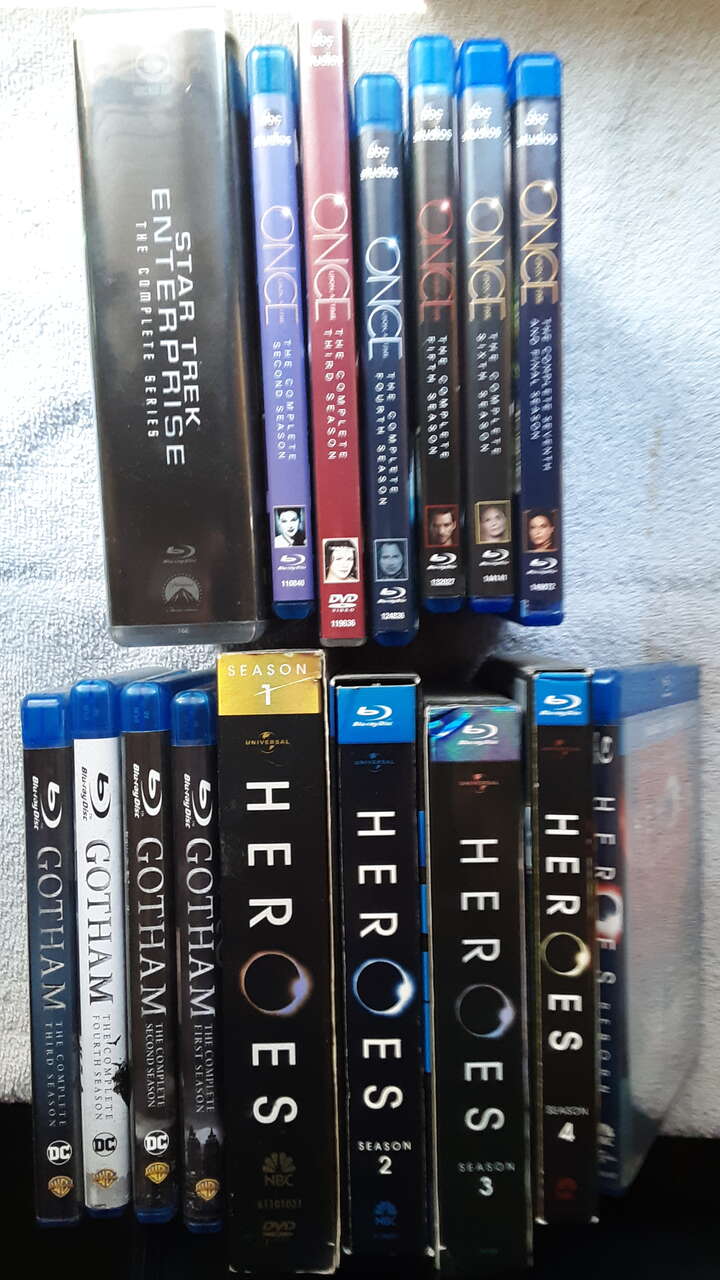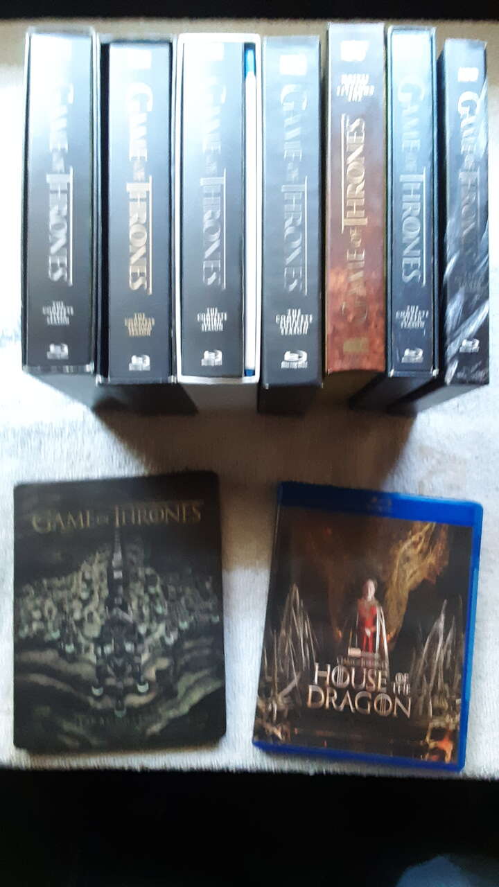 TV series- Binge watch! Game of Thrones, 8 seasons+++House of Dragon season1= $50., Picard 1-3 $30, Star Trek Enterprise 30.00$, Loki & Wandavision $10.00/each, Heros 1-5@ 20.00, Once Upon a Time 2-7@ 20.00 /// DVD complete series: Elementery, Frasier, = 20.00each. Also 100's of movies $2-10.00each. a few 3D and 4k's $10., 3/$25each