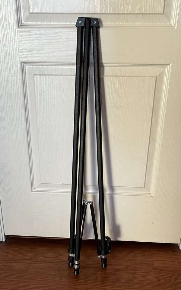 36”- 67” high black metal folding tripod/stand/display. For indoor and outdoor use. $20