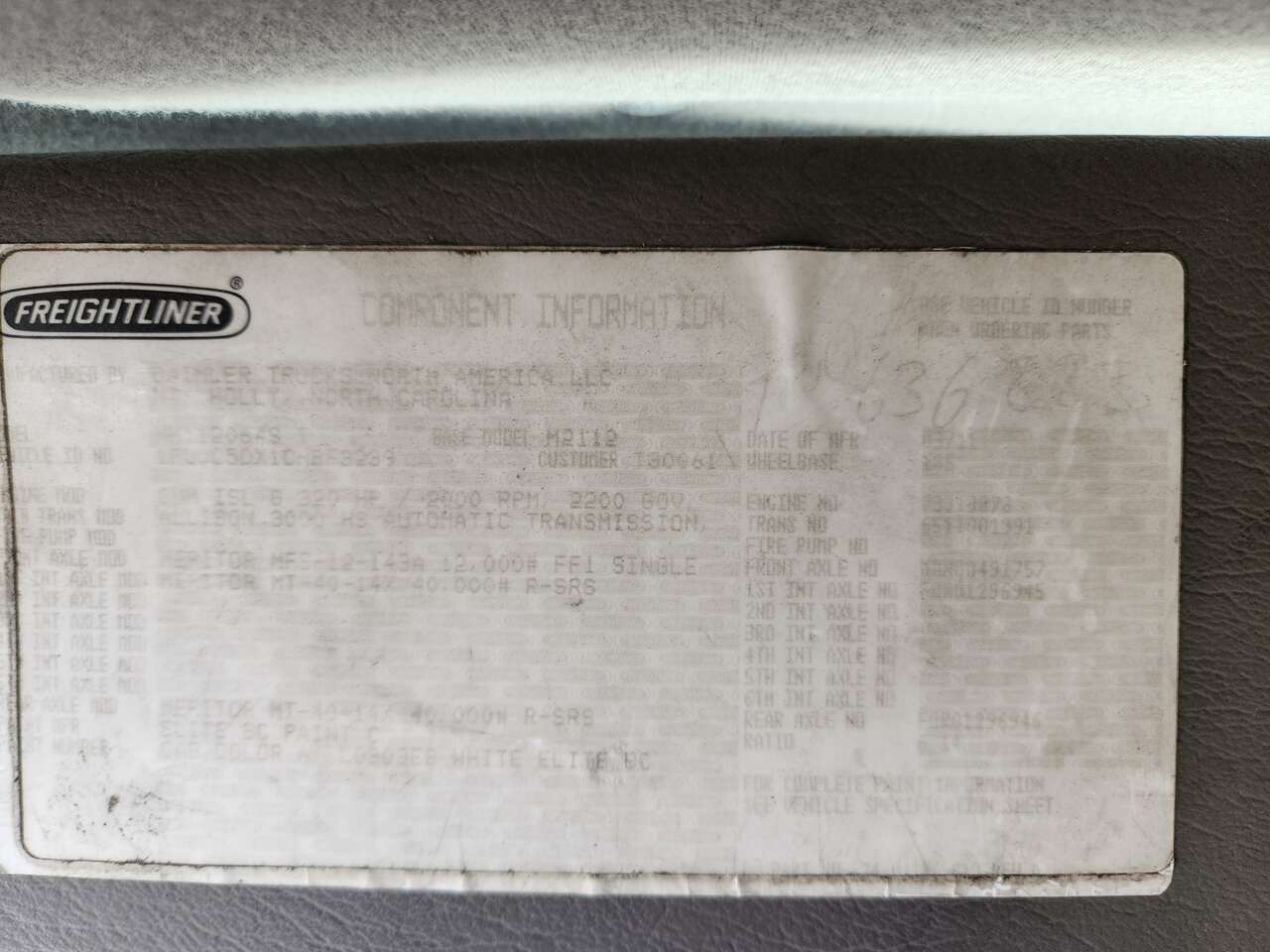 Cummins 320 HP, ALlison Automatic (Model 3,000), 40k Rears, 12k Front Axles, 6.14 Rear End Ratio, AC (Blowing Cold), Air Ride Suspension, 185" WB, CNG, 13.2k Hours, 240K miles, Sliding 5th Wheel