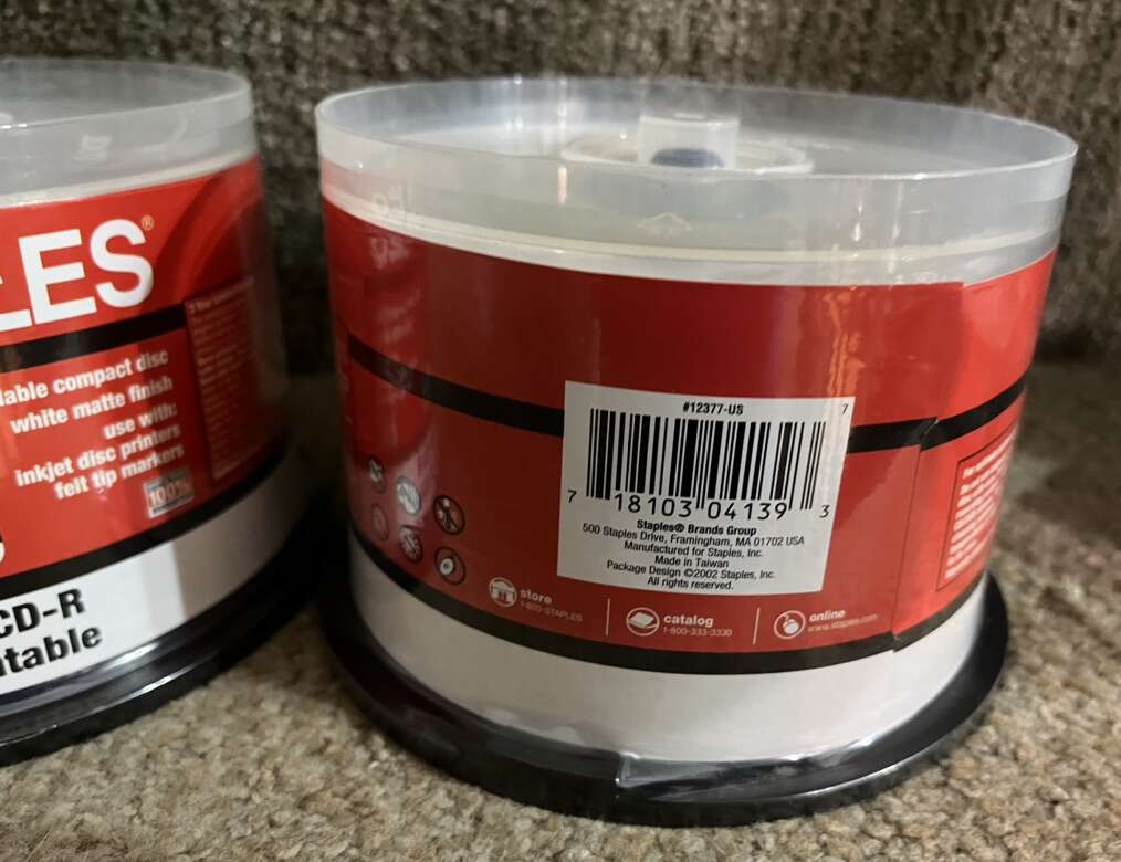 2- New STAPLES CD-R Recordable 50 Discs 80 Min 700MB Capacity 52X Speed, SEALED