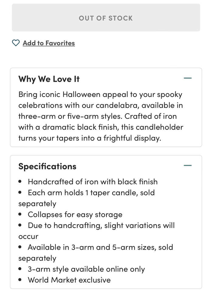 Candelabra by World Market. Currently sold out.