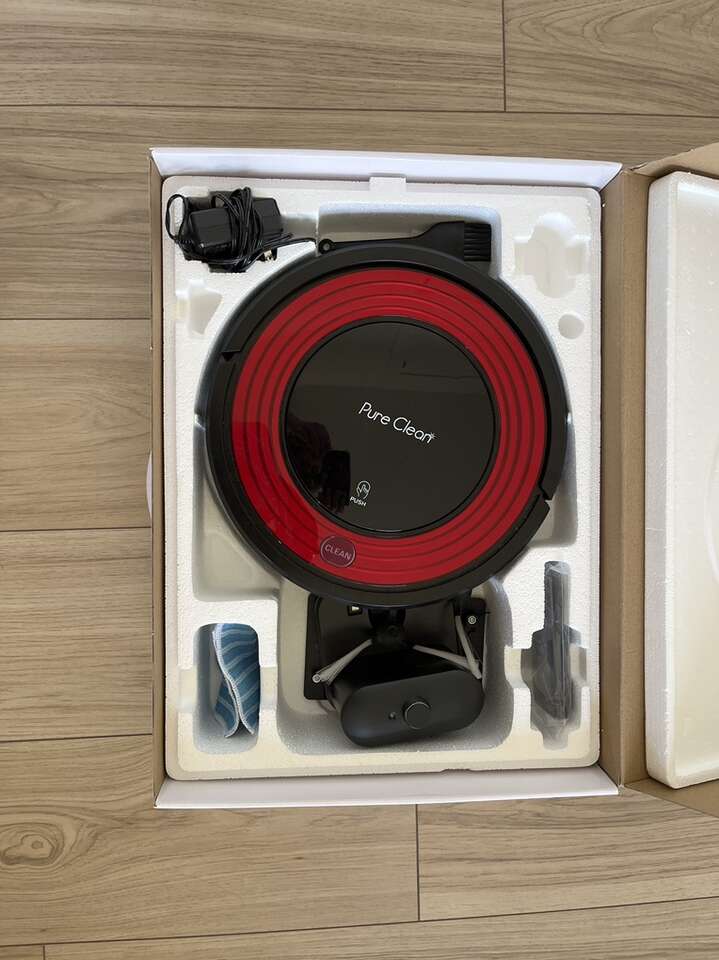 Red Pure Clean Smart Robot Vacuum. In excellent condition. Box of accessories included.