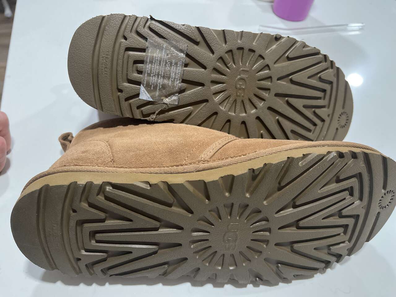 The outsole of this product is either a sugarcane EVA outsole, which is a responsible compound using sugarcane foam that allows us to reduce dependency on fossil fuels by replacing petroleum-based ethylene, or a Treadlite by UGG™ outsole.