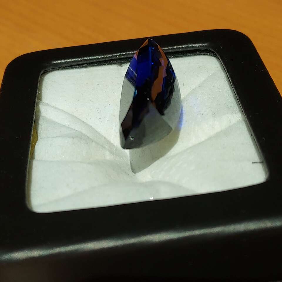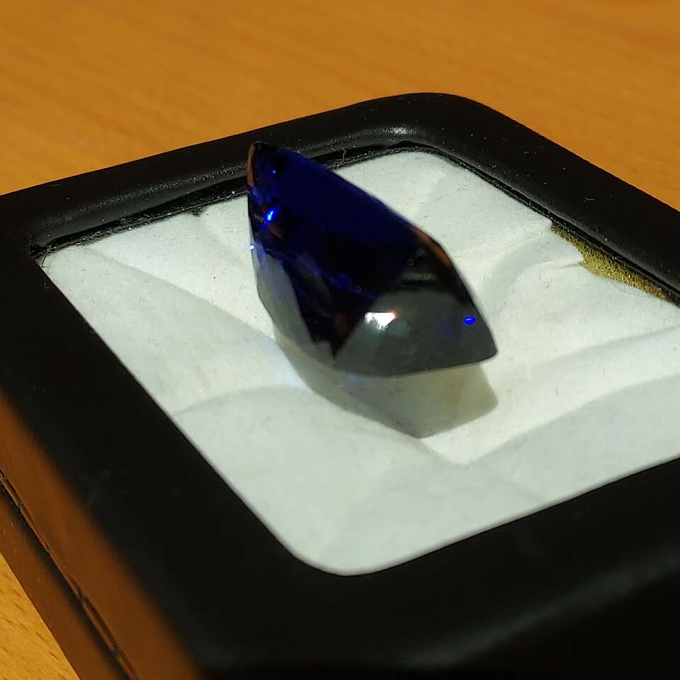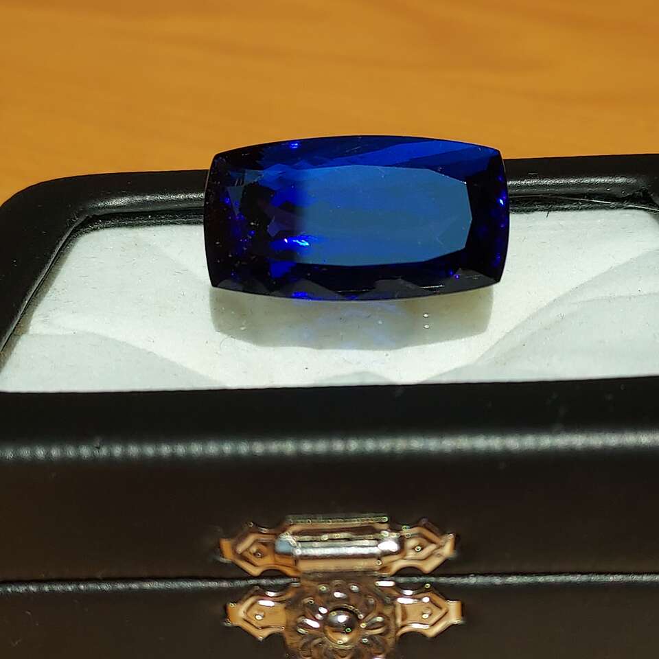 53.95ct., clarity is eye clean, medium dark, strong, violetish blue color,