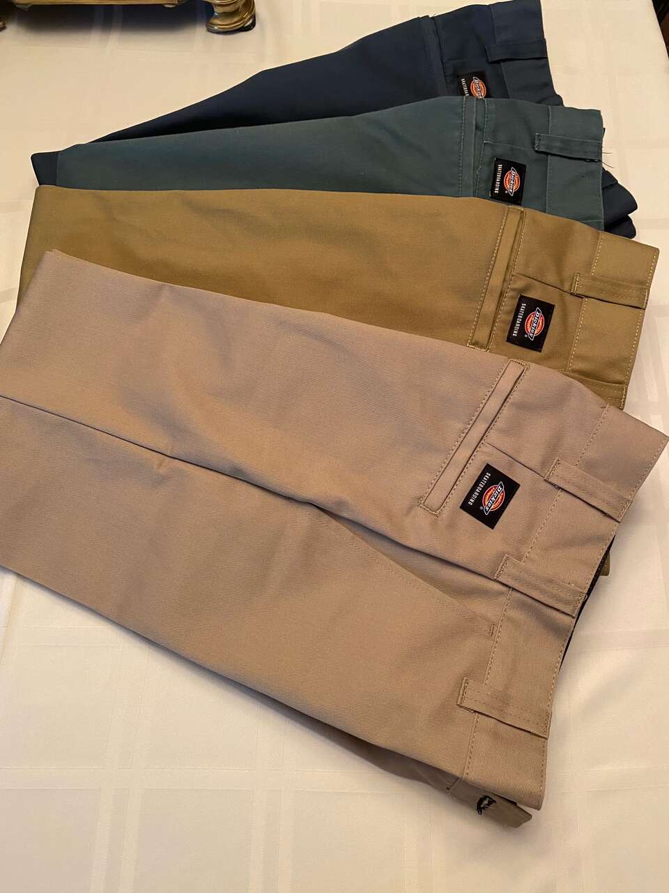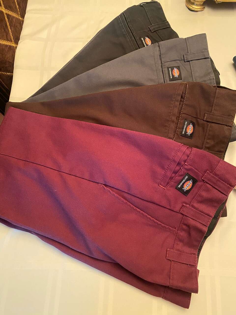 Dickies Skateboard pants. Regular Fit. Waste 26". Inseam 30". Four brand new pairs(never worn) and four lightly used pairs. Colors: Air Force Blue, Lincoln Green, Moss Green, Sand, Black, Charcoal Grey, Chocolate Brown, Marron. Outgrew before used. Paid $400 for all 8 pair. Asking $200 total. Great for back to School! Must buy All 8.