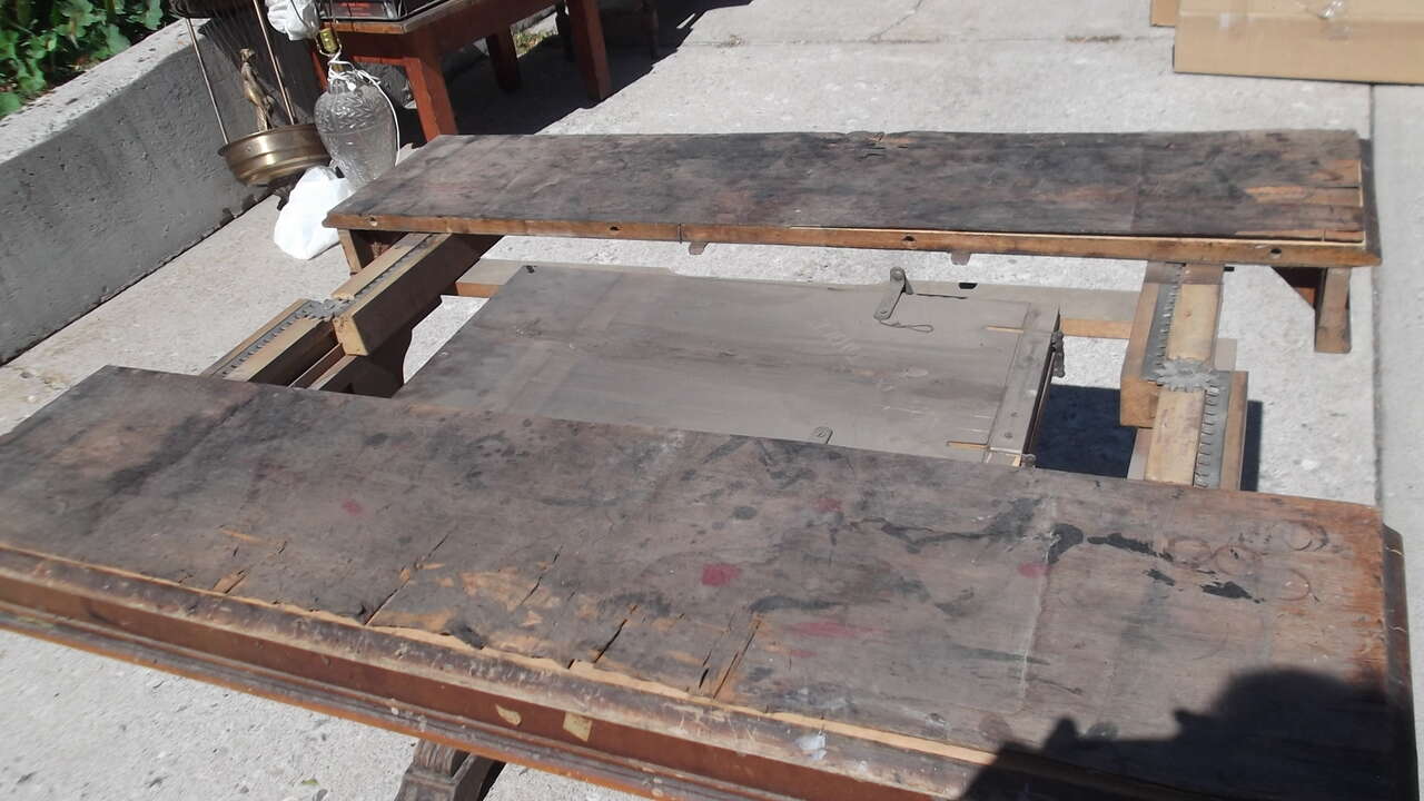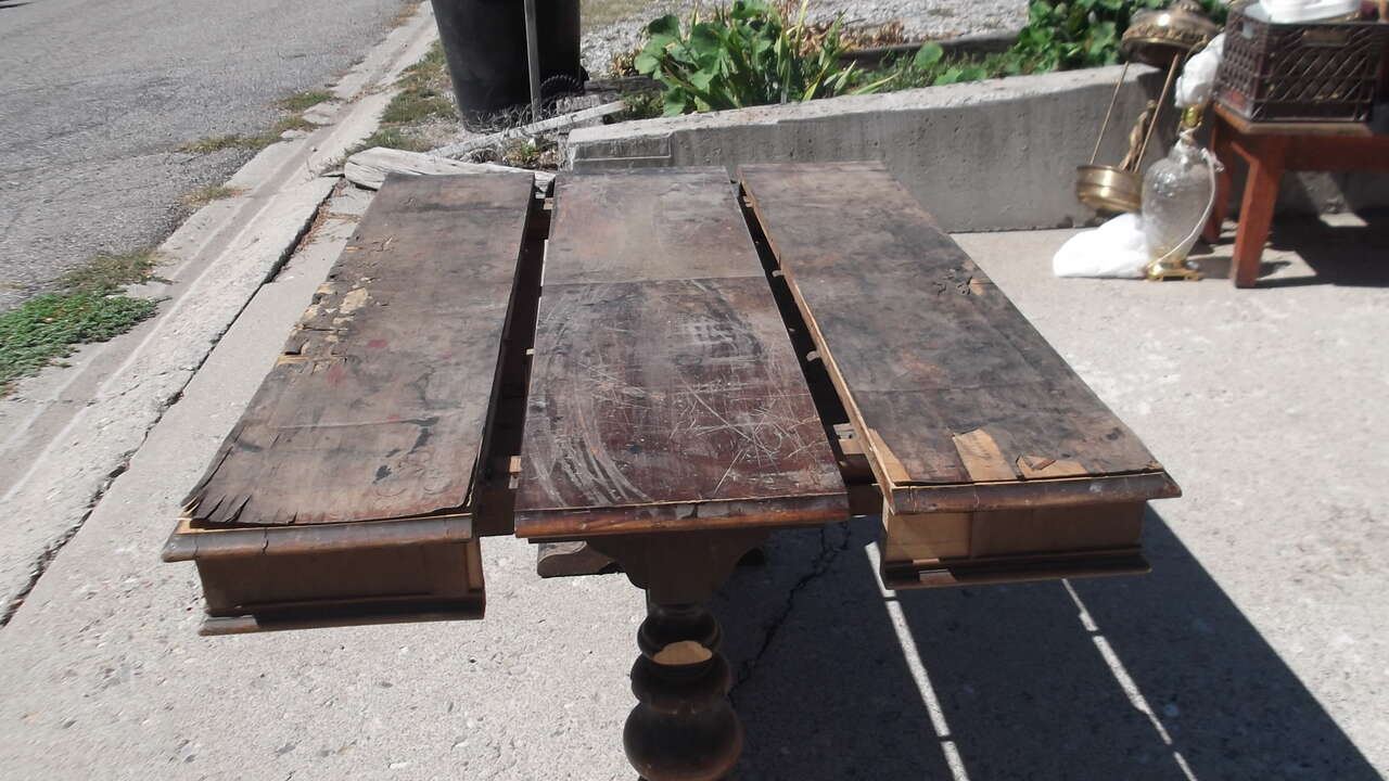 Unique Antique Table ... Has a center Leaf ... 21 x 47 x 30 high ( measurements are before center leaf is added )