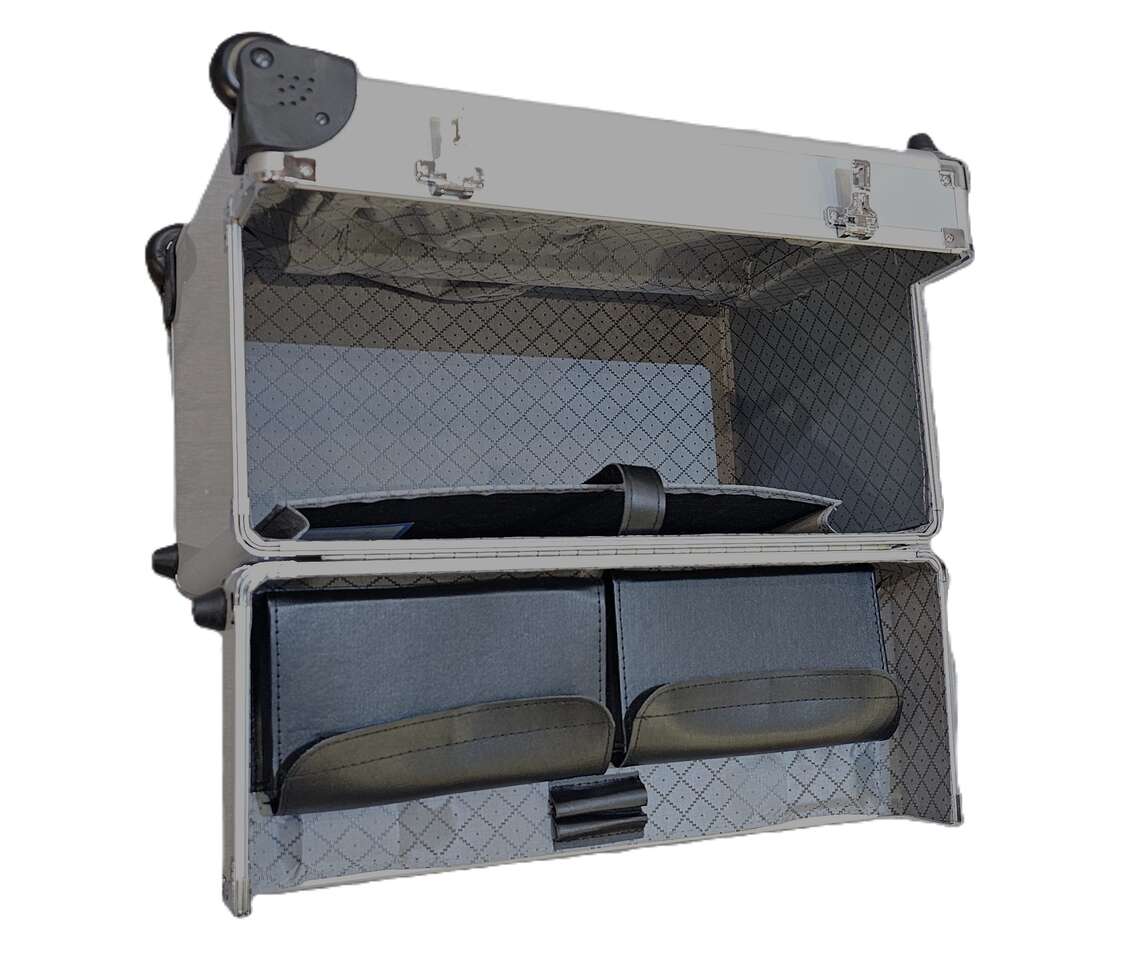 We designed this flight deck case as a modern interpretation of the old leather Jeppesen style pilot cases or lawyer cases.