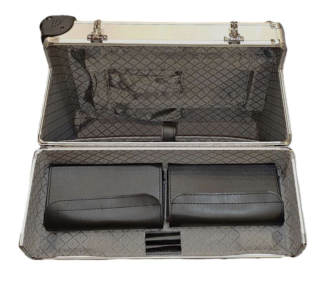 The **Star Light Collection **is in its natural aluminum/magnesium alloy color that is reminiscent of a bygone era of early aviation. It is protected with an anodized clear plating that protects the alloy from light scratches and weathering. The retractable handle, wheels, and feet are matte black. The rivets, corner protectors and locks are chrome.