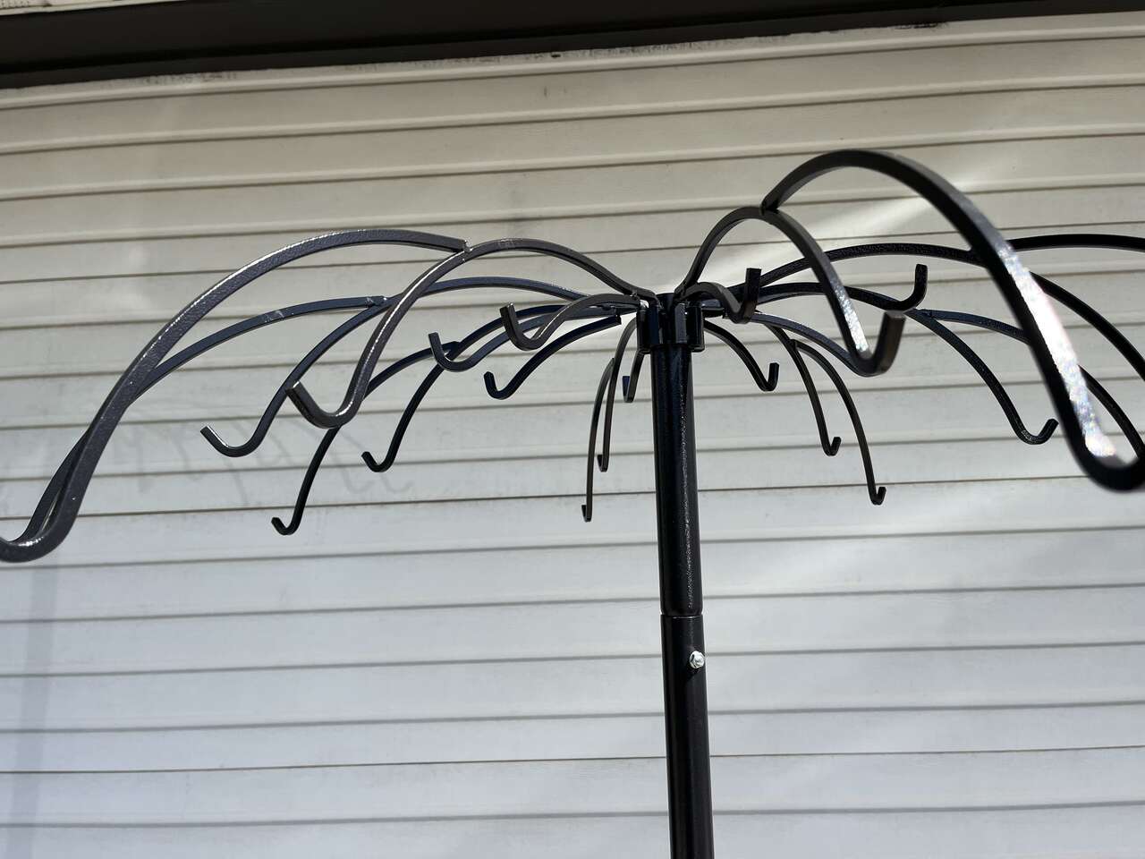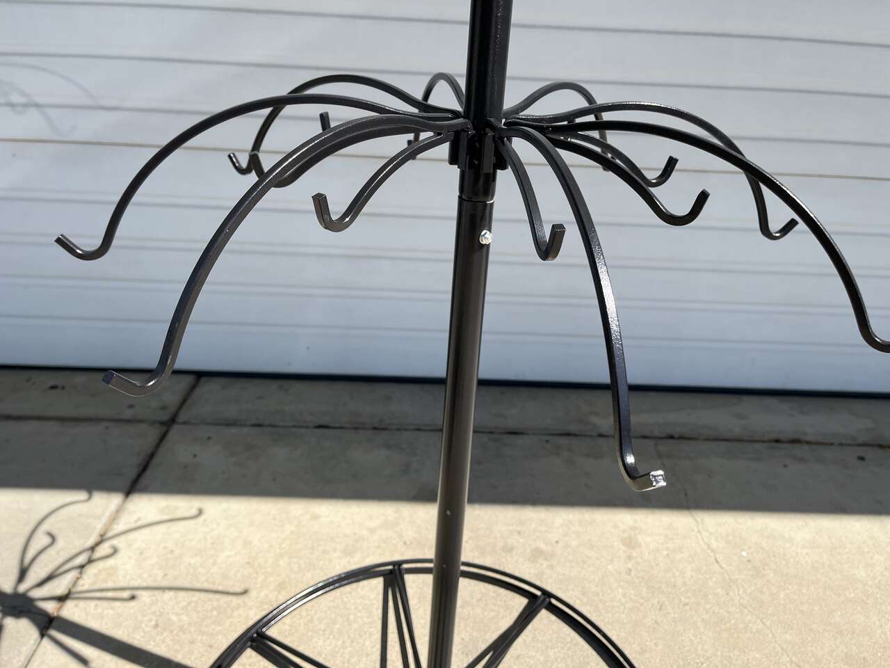 VenmoBrand new, metal round display stand with 16 multihook arms. This is a solid stand. The top tier is 37" across with 8 multihook arms. The bottom tier is 27" across with 8 multihook arms and a 29" base. It's black and is adjustable from 70" to 81" tall. I have 12 available.