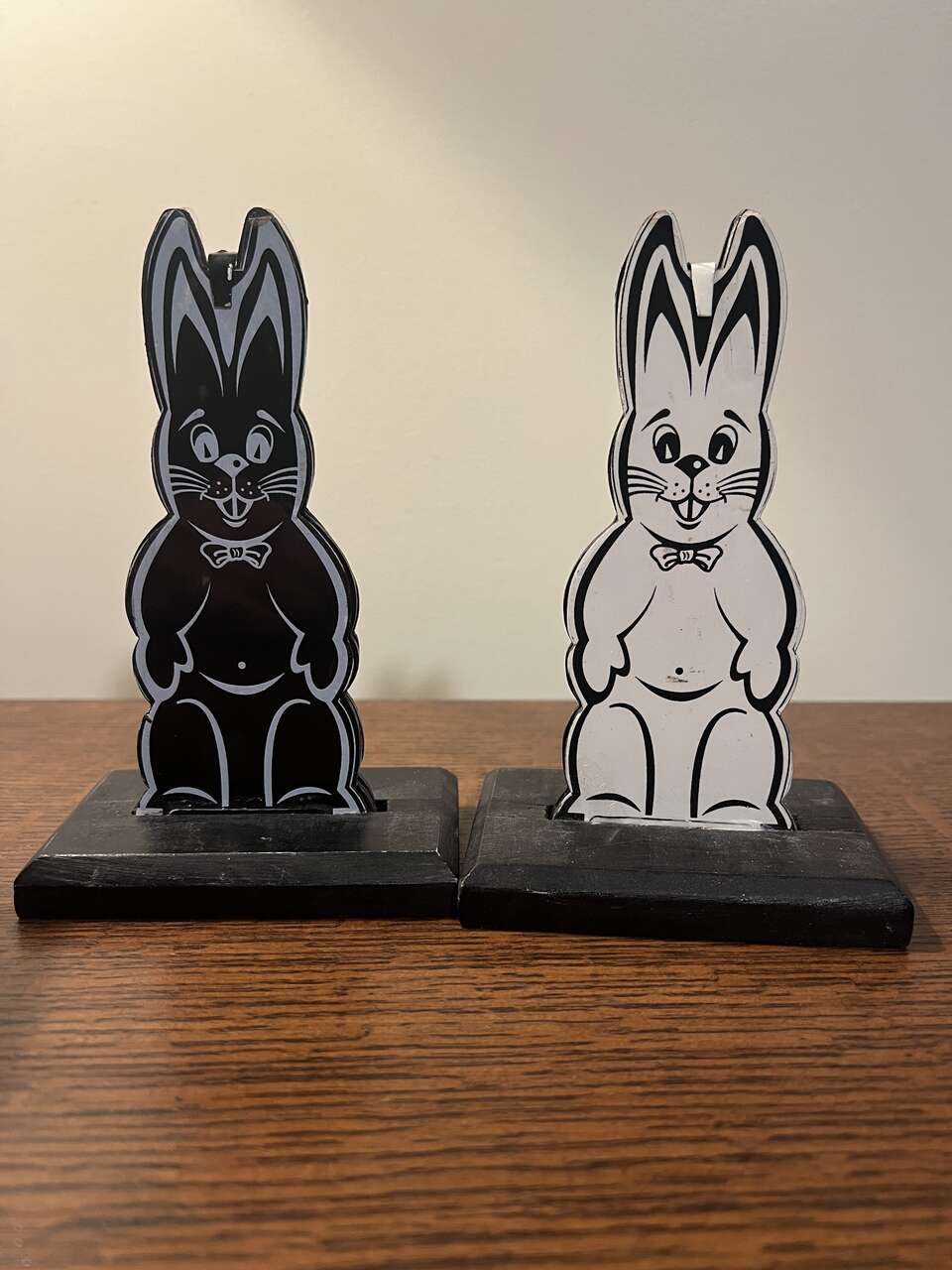 A black rabbit and a white rabbit are each covered with a tube and are to switch places at the magician’s command. And the rabbits do actually change places several times. In the course of this funny routine, which is interspersed with jokes, the audience notices that the rabbits and their tubes are turned around each time, so everyone thinks the other side of the white rabbit must be black, and the other side of the black rabbit white.