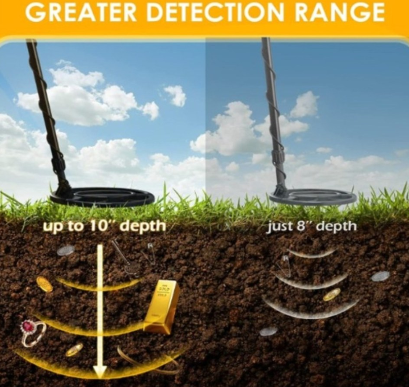 ApplePayConvenient to Use - Ergonomic handle design makes the portable metal detector perfect for all-day use. It can be adjusted from 39.5 to 51.1 inches and fit in height for adults and children, which allows you to share your treasure-hunting spirit with your little ones! Also, with the intuitive backlight display, you can easily get the type of metal target, depth, sensitivity level, operating mode, and battery indication at dawn, dusk, or even broad daylight. 10 Inches Wide & IP68 Waterproof Search Coil - The metal detector for adults features a 10 inches search coil, so you can scan larger areas faster. Also, IP68 waterproof enables the metal detector to work well underwater, and means you can take this waterproof metal detector and play on the beach wherever you want. Treasure can no longer hide from you beneath the waves. 5 Detection Modes for Efficient Accuracy Search - This metal detector has 5 search modes including All-Metal, Discrimination, Memory, Jewelry, and Pinpoint that allow you to find exactly what you want easily. AM mode searches for all metals, DISC mode ignores unwanted metals in a sequence, Memory mode reacts only for the last type of metal you’ve searched for, Jewelry mode ignores iron, and PP mode is used to pinpoint your target with high accuracy. 10” Detection Depth - Equipped with an advanced smart chip, the metal detector greatly improves search range, sensitivity, and detecting efficiency, which helps you find what you’re looking for quickly and accurately. It’s so powerful that the gold metal detector has the ability to scan up to 10 inches into the ground and find the treasure you must go beyond the surface.