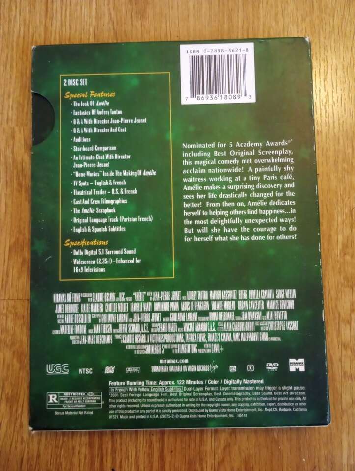 Amélie~ Used 2-disc set on DVD. In good condition and from a smoke-free home. This movie is in French with English subtitles. Rated R. $2 cash or Venmo. Will hold with Venmo. Text if interested. Feel free to check out my other ads-lots for sale.