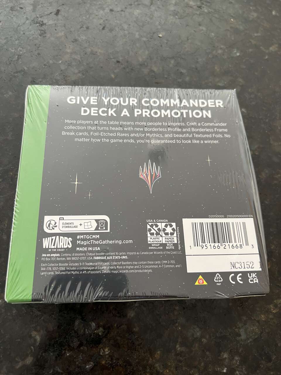 PayPalI have a brand new and still sealed Magic the Gathering Commander Masters collector booster display box (4 pack collector box). Available for pickup. Product Details Craft a Commander collection that turns heads with some of the greatest cards to grace the Commander format spiced up with stunning special treatments. Every Collector Booster contains 1 Foil-Etched card, 5 Borderless cards (1 of which may be Textured Foil), an Extended-Art card of rarity Rare or higher from one of the Commander Masters Commander Decks, and a total of 9–11 Traditional Foil cards to really make your decks shine. No matter how the game ends, you’re guaranteed to look like a winner. The Commander Masters Collector Booster Box contains 4 Commander Masters Collector Boosters. Each Collector Booster contains 15 Magic: The Gathering cards and 1 Traditional Foil double-sided token, with a combination of 5 cards of rarity Rare or higher and 2–5 Uncommon, 4–7 Common, and 1 Land cards.