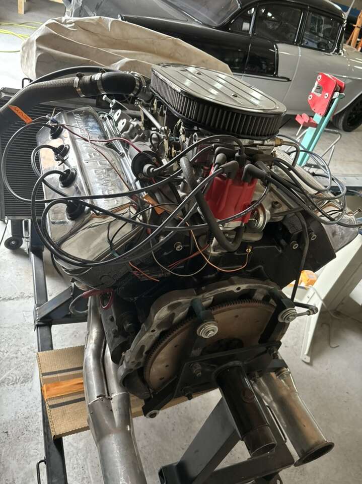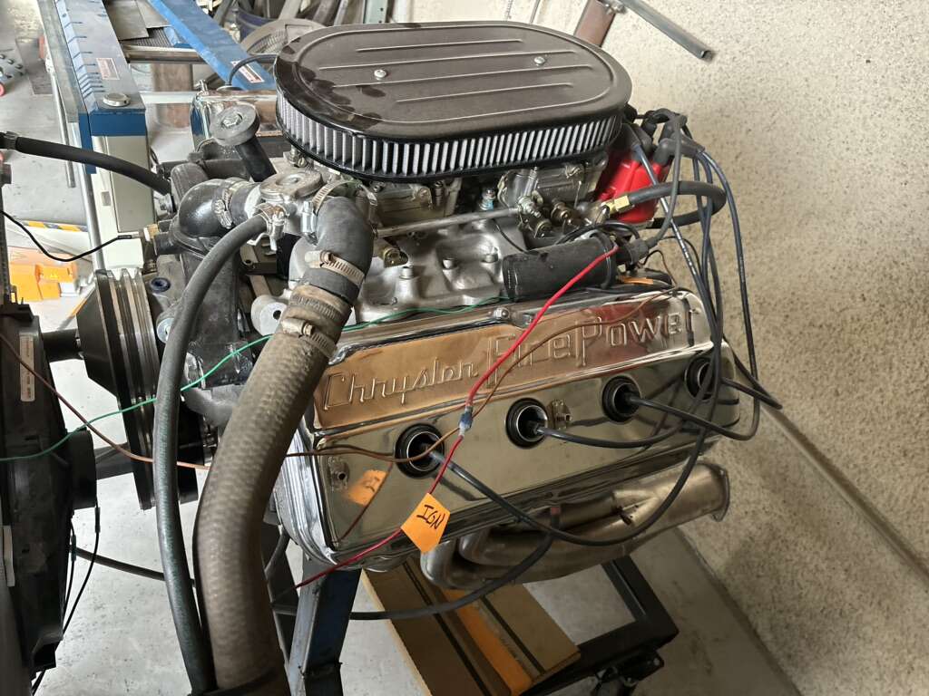 392 Hemi that has been rebuilt a number of years ago but never really drivin. Strasburg machine went through it and said it was built with good quality upgraded parts. Casting numbers show it’s a 1958 which 345hp stock but according to the machine shop go in its components it should do well over 400hp. It is a dual quad set up and comes complete with carbs, exhaust headers, distributor, starter and flywheel. It is currently set up on an engine run stand so you can come hear it run before you buy it. It is a beautiful motor and runs and sound great. Please call with any questions.