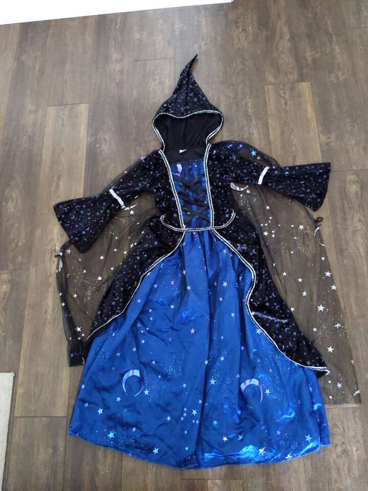 Kids size L 12-14 Midnight Sorceress Costume from Spirit Halloween. Comes with velvet hooded gown, metallic wand, choker, and drawstring pouch. Retails for $60 +tax. Asking $48 obo.