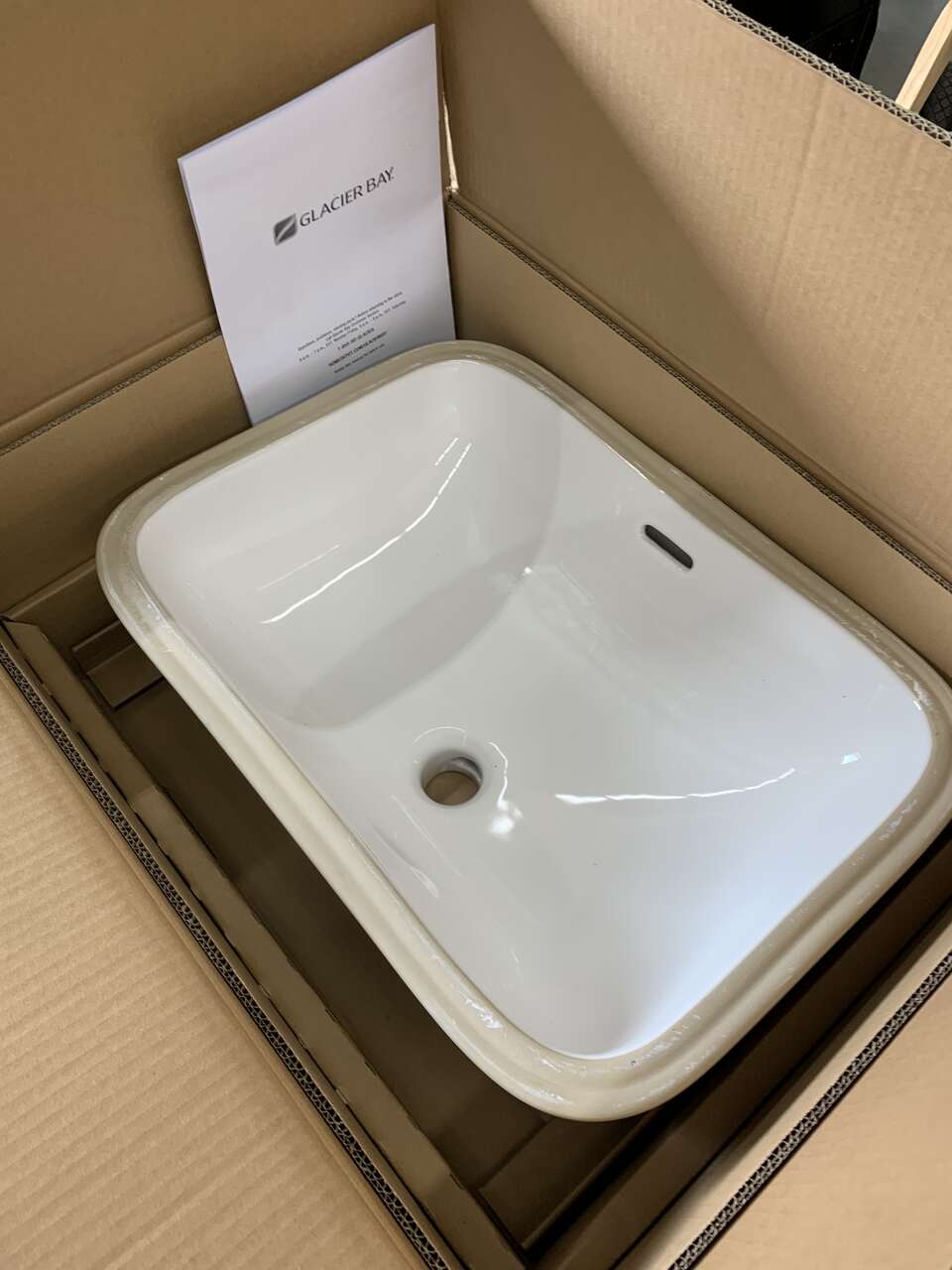 The Glacier Bay rectangular undermount sink is double fired and glazed for durability. The Rectangular Undermount Sink in White with overflow is stylish and also functional, easy care gloss finish. The sleek lines will fit into a variety of decors.