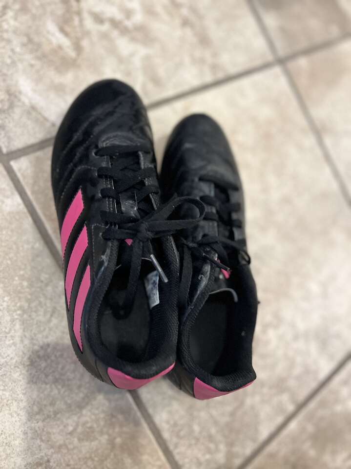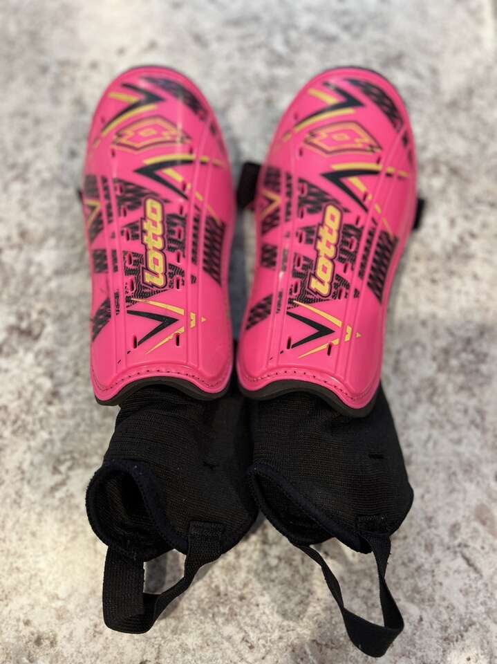 Black/Silver Cleats - Size 9K $10 SOLD Black/Pink Cleats - Size 4.5 $10 Adidas Shinguard Small $10 Lotto Shinguard XL 5’3”-5’9” $10