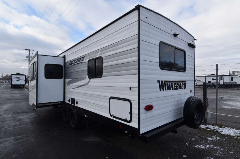 Spacious Family-Friendly Layout: Designed with families in mind, this Travel Trailer boasts a roomy interior with ample sleeping space and a cozy living area for bonding after a day of adventure. Luxury You Deserve: Enjoy high-end finishes, modern appliances, and plush furnishings that transform every trip into a first-class experience. Comfort at Every Turn: From the well-appointed kitchen to the relaxing bedroom, every inch of the Winnebago Access prioritizes your comfort with thoughtful amenities. Versatile Storage Solutions: Pack everything you need with cleverly designed storage spaces, ensuring a clutter-free environment for the whole family.