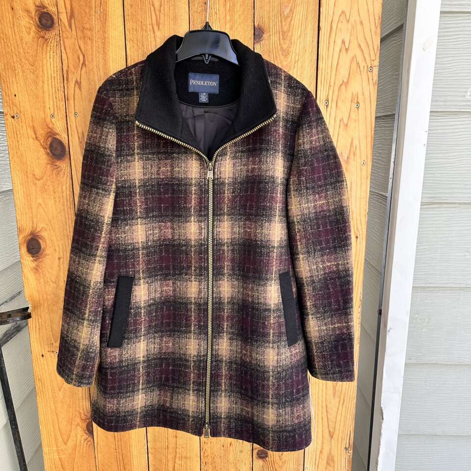 VenmoNew with tags Pendleton Ladies Wool Walker Jacket Size: Large Color: Maroon Bronze Plaid Two side hand pockets Lined in 100% satin polyester Inside slip pocket Full length zipper