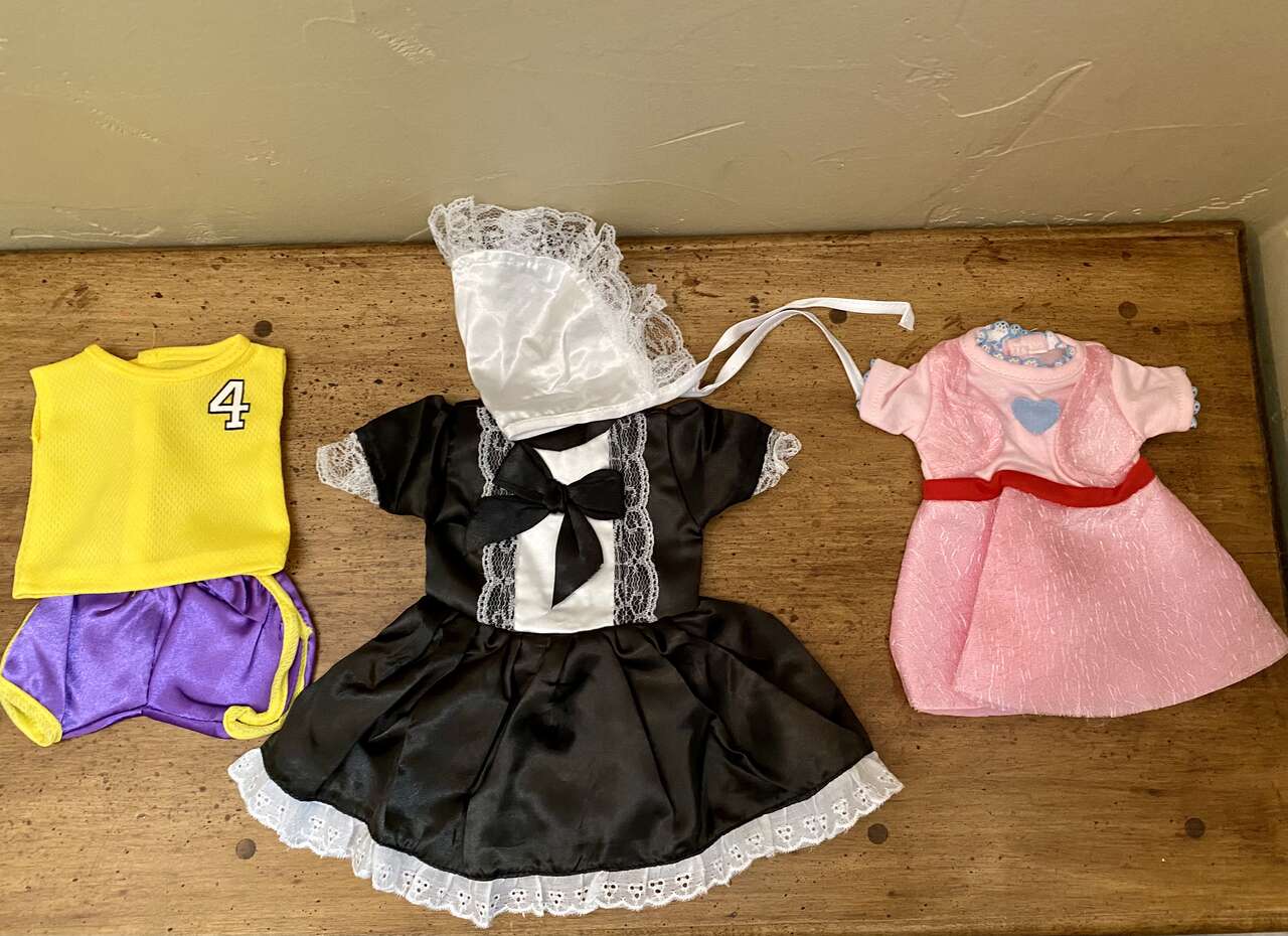 NEW - 18 inch Doll Clothes 3 OUTFITS As Shown - Gym Clothes - Black Dress +Hat -Pink Dress - C PICS. I have a few listings of New Doll Clothes.