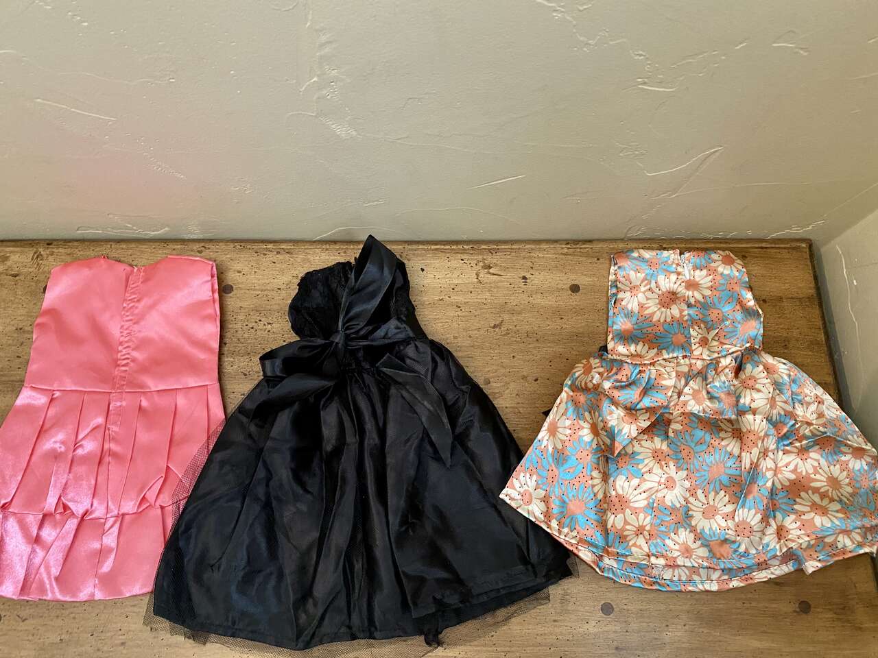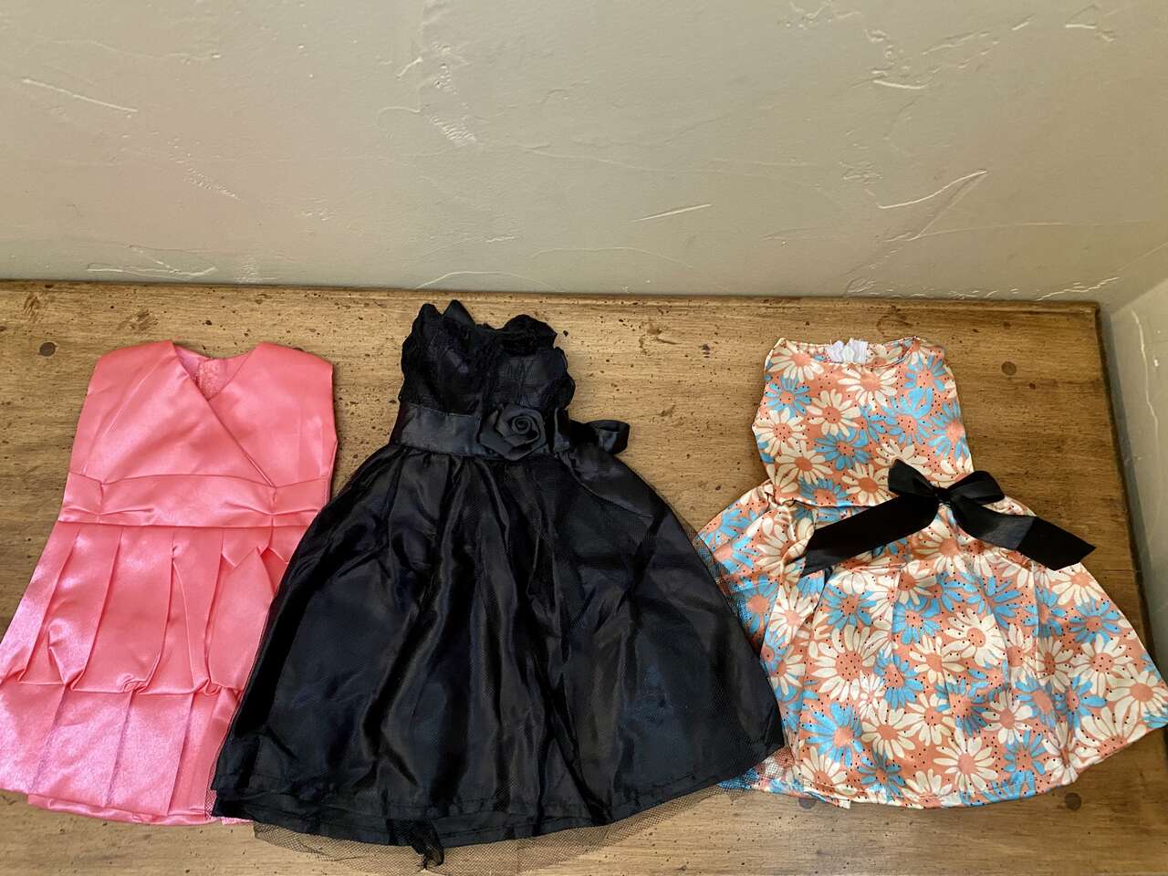 NEW - 3 Beautiful 18 inch Doll Dresses - Pink-Black-and Multi Color - Very Detailed - See ALL Photos. All of these dresses are special. Great Gift!