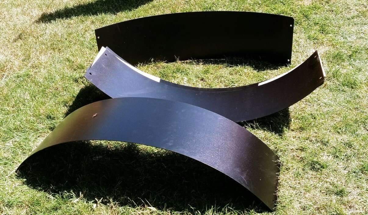 Metal wheel wells? 42" Long from straight across, end to end, probably 4 ft if it laid flat. Fixed curved pieces. 11.75 Width Four pieces total. Or you could make a giant fire pit ring? $60 OBO Text is best if you have any questions