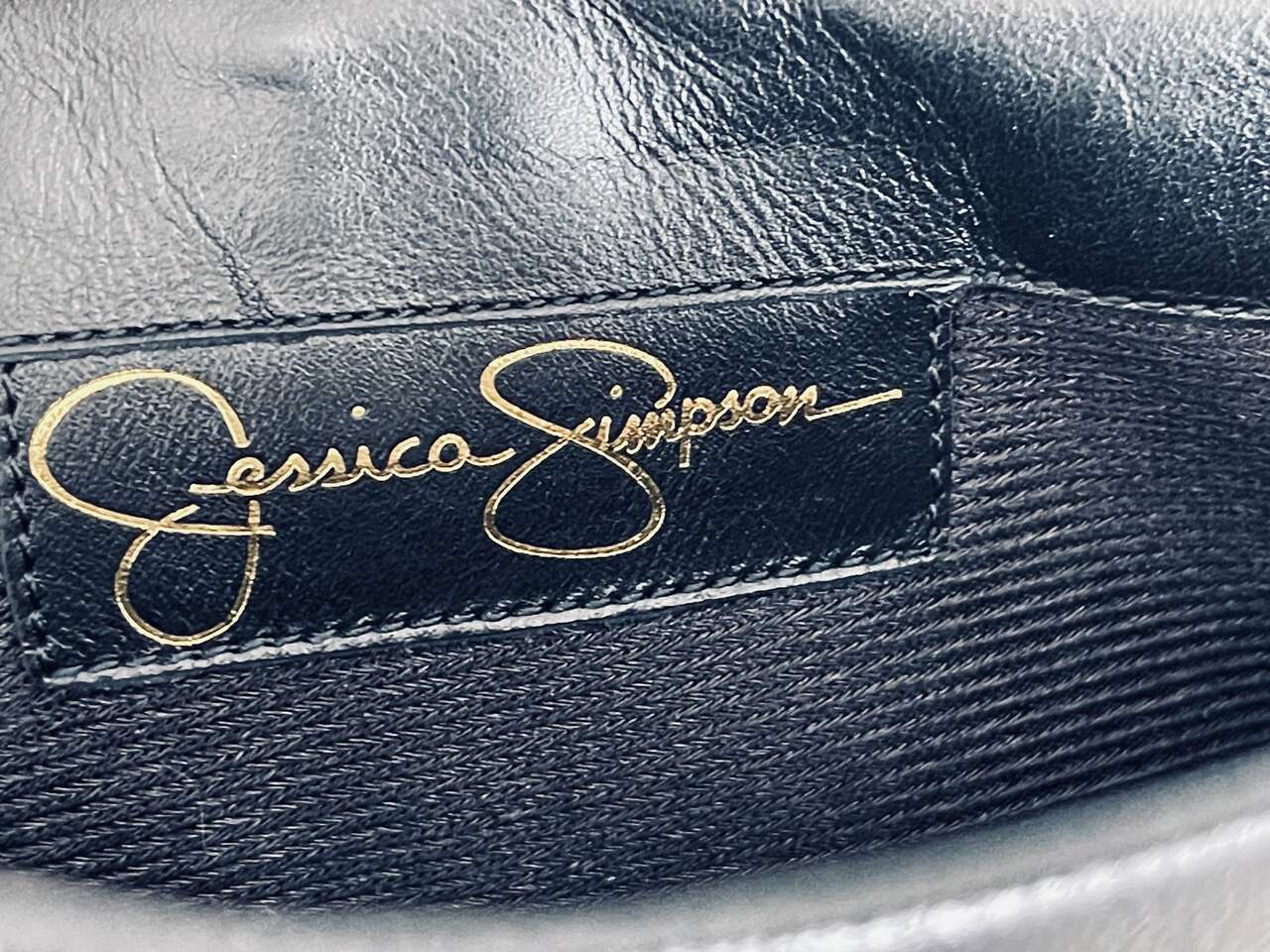Jessica Simpson Tall Fold-over low wedge Black silver button boots. Black vegan leather. Silver/pewter silver side button detailing. Pull on boots w/ inner side zippers. Almond toe. Comfortable low 1 1/2" heel.