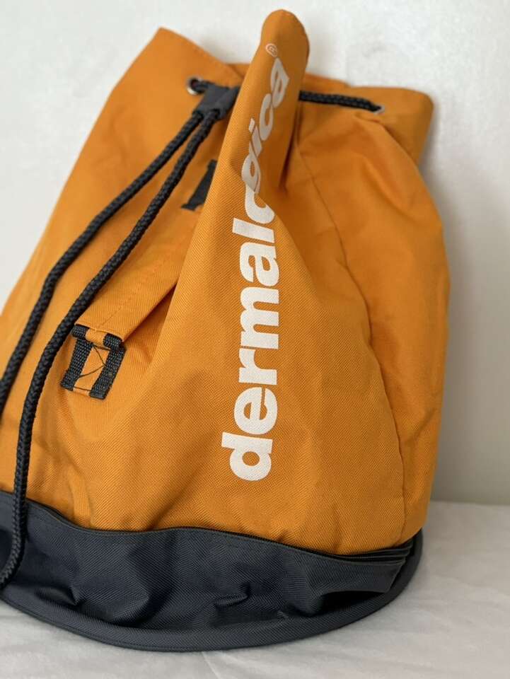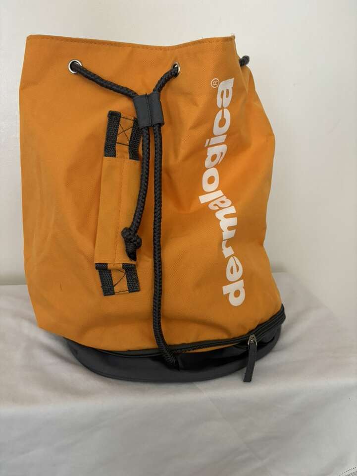 Dermalogica Backpack Sling Pack Strap Orange Day Bag Measurements: Top compartment length: 16” Bottom compartment length: 4” Diameter: 12”