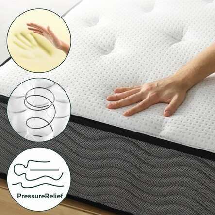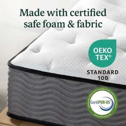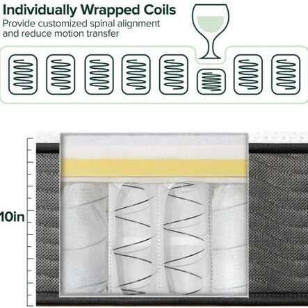 About this item SUPPORTIVE RELIEF FOR YOU & THE PLANET – This ultra-comfortable hybrid provides reliable support night after night and is shipped in a new, smaller box for a reduced carbon footprint CUSTOM COMFORT – Individually wrapped coils topped with conforming layers of not-too-soft comfort foam provide motion isolation and the perfect level of pressure relief for you as you rest MADE TO LAST – Durably designed to last you for years to come; twin mattress supports a maximum weight of 250 lbs, while all other sizes can support up to 500 lbs CERTIFIED SAFE MATERIALS – Crafted from high-quality CertiPUR-US certified foam and wrapped with an OEKO-TEX certified mattress cover that ensure no use of harmful chemicals for safer, healthier sleep EXTRA PEACE OF MIND – A worry-free 10-year limited warranty is included; please allow 24–72 hours for your mattress to expand to its original shape