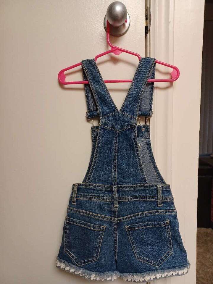 Jordache Denim Flower Embroidered Overalls Shorts. Size 4/5 Toddler.