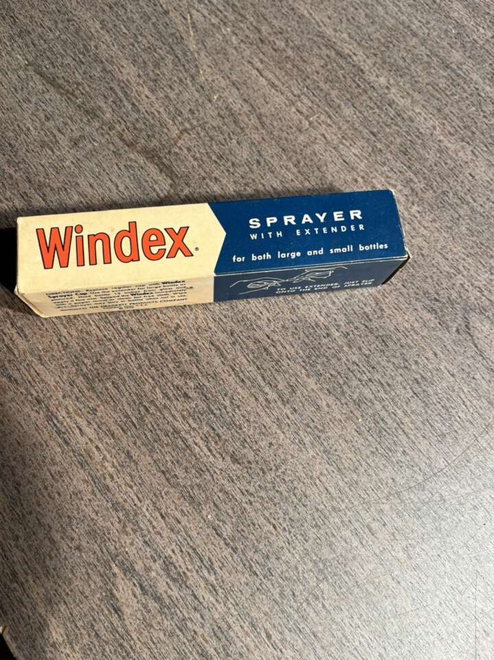 Vintage Windex pump sprayer, still in box, never used. Great decor item for that grocery oriented man cave, or Windex enthusiast.
