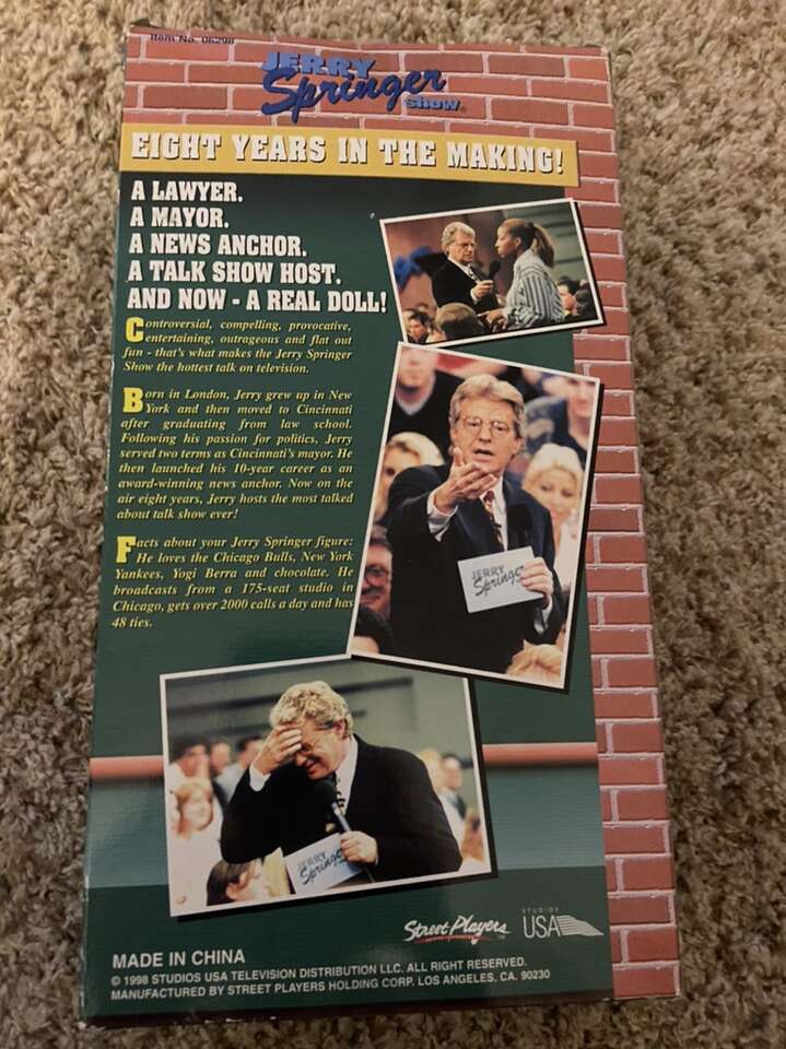 12” collectible 1998 Jerry Springer doll in box. Box has a small dent in the upper corner. Cash only. Located in Sandy.