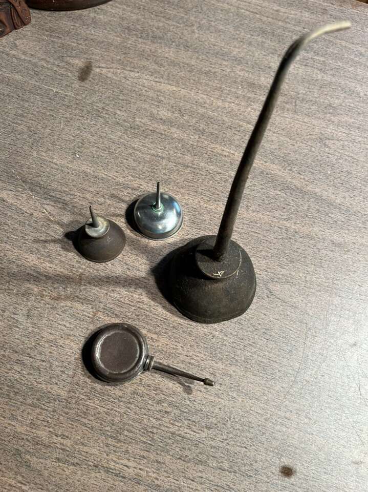 Fun grouping of antique oil cans. Great for decorating a garage or man cave. All still work great. Fun shapes. $5 each