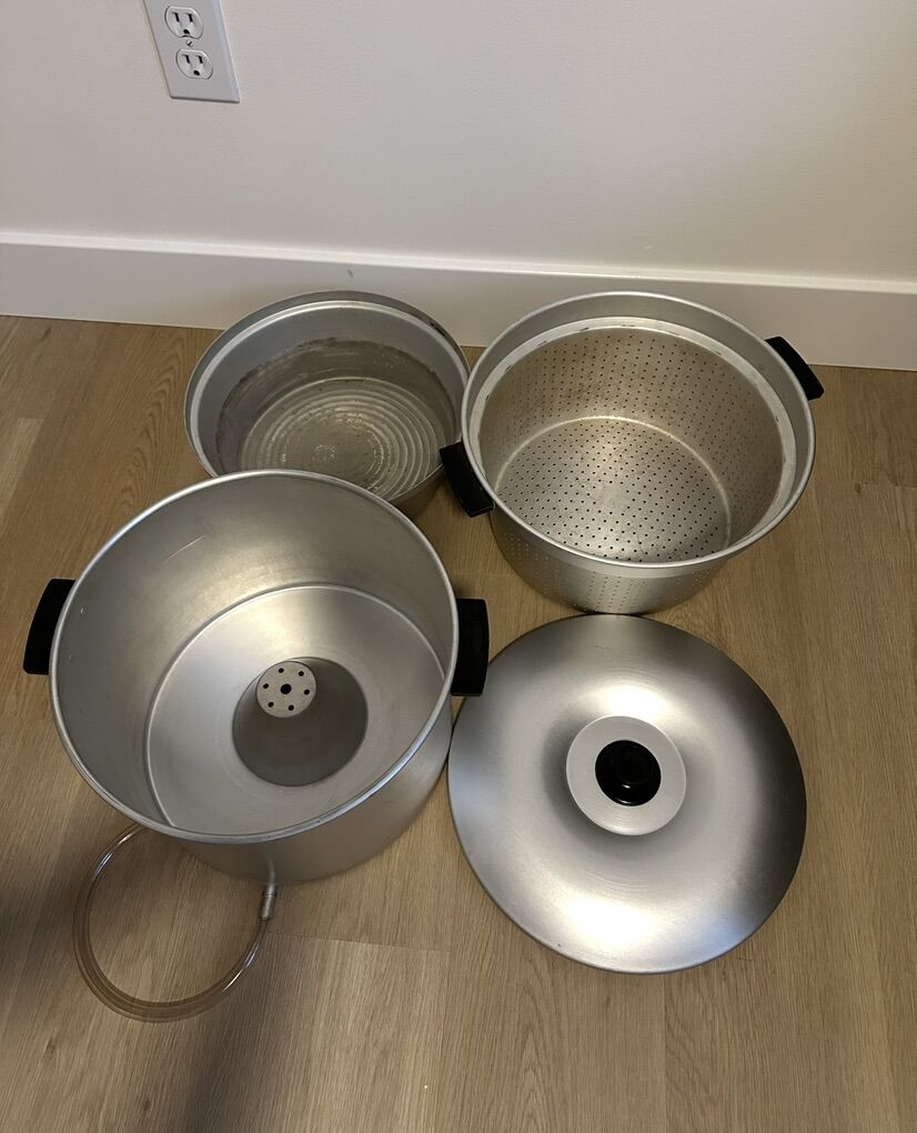 VenmoNice Canning Steamer and Juicer in good condition. You can Save money. Great to juice fruits and use as a steamer as well. Some goes up to $120 plus Although it has some juice stain it works great.
