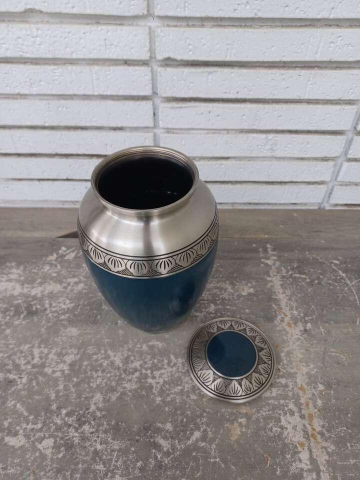 Private label blue essence 11 inch tall 220 cubic inch volume urn brand new of course any questions please message me
