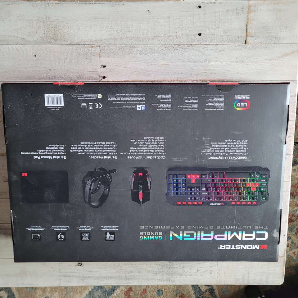 VenmoMonster 4-in-1 Gaming Keyboard Features and Benefits: 4-in-1 Gaming Accessories Set Includes keyboard, a mouse with pad, and a headset Membrane Keyboard 10 hotkeys, 12 multimedia shortcuts, and RGB LED backlight Gaming Mouse 7 key buttons with forward and back, and preset high DPI settings Gaming Mouse Pad Highly accurate tracking and durable with an anti-slip base Soft Headset PU ear cushions, volume control, and rotating tactical microphone